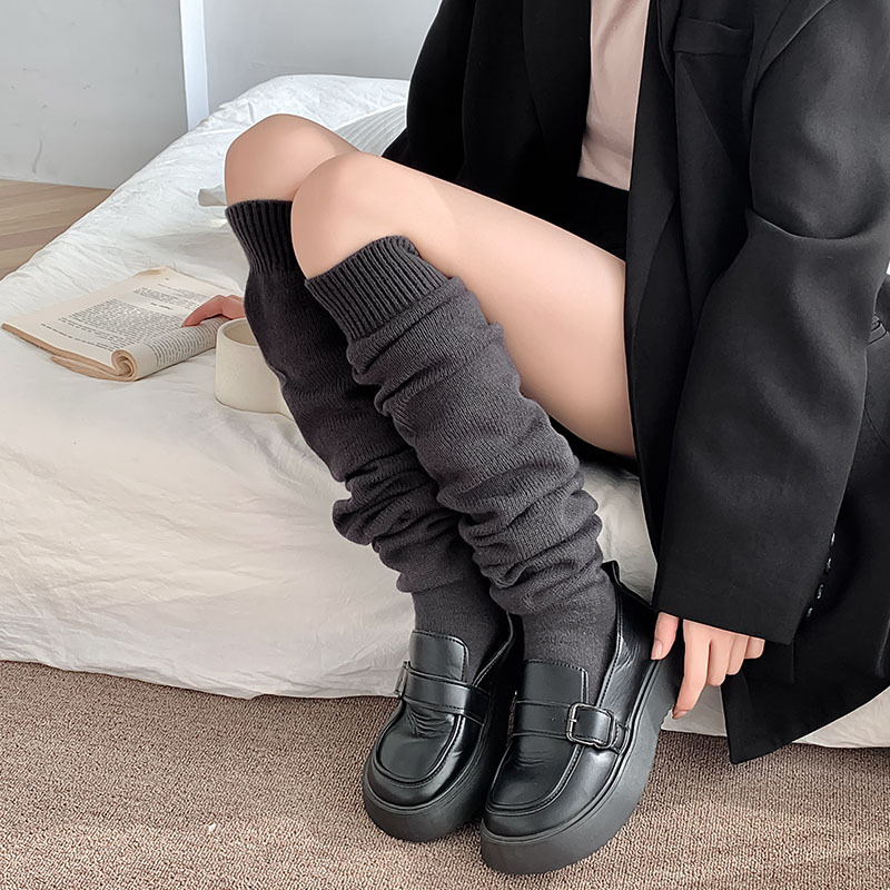 가을과 겨울 두꺼운 따뜻한 미끄럼 방지 무릎 위 양말 여성용 인 한국 스트리트 스타일 트렌디 아우터 느슨한 랜턴 더미 양말스토어 가기