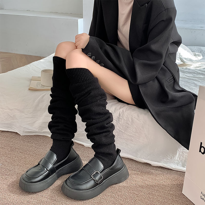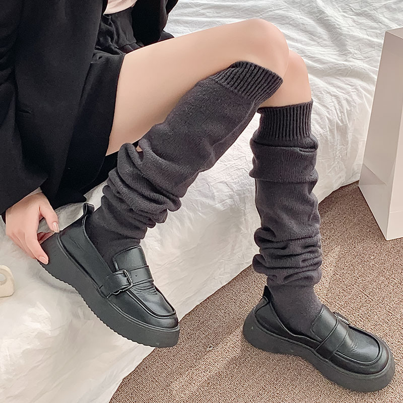 가을과 겨울 두꺼운 따뜻한 미끄럼 방지 무릎 위 양말 여성용 인 한국 스트리트 스타일 트렌디 아우터 느슨한 랜턴 더미 양말