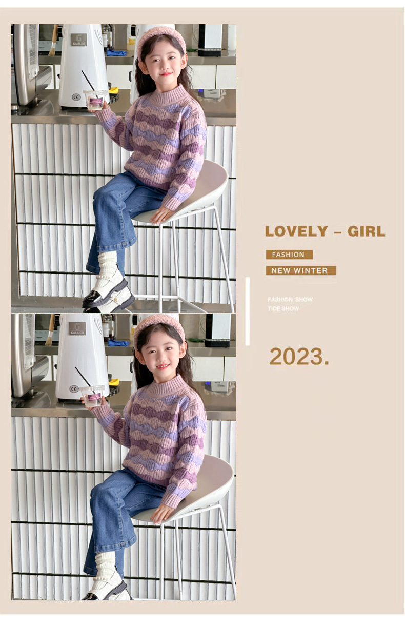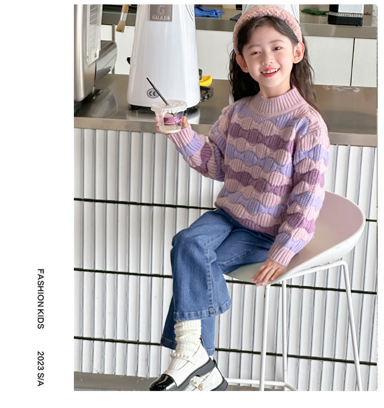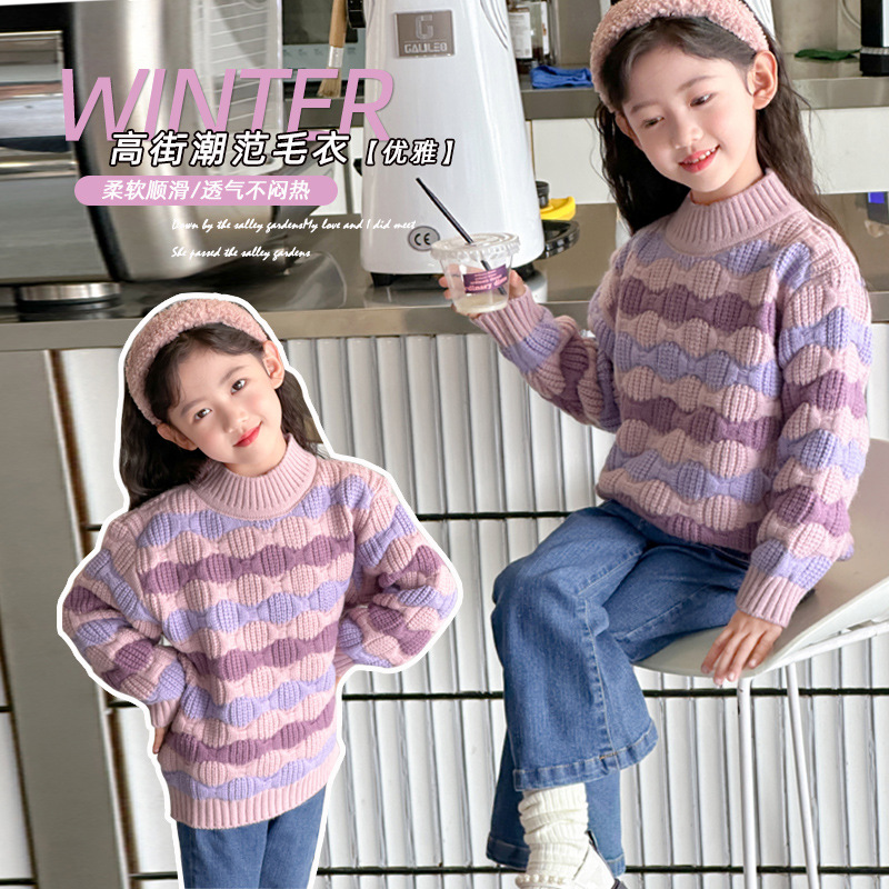2025년 여아용 신상 두꺼운 스웨터 컬러풀 니트 겨울 트렌디 소녀 달콤하고 멋진 스타일 스웨터 제조업체 제품스토어 가기