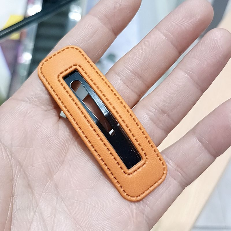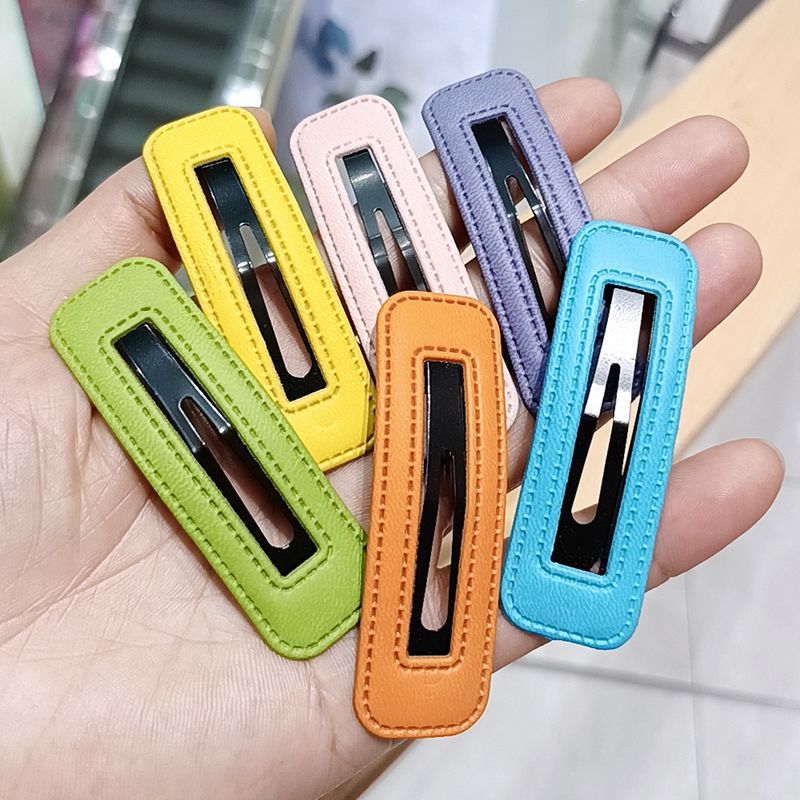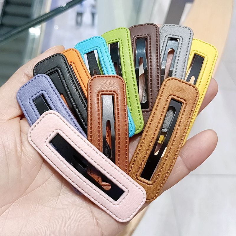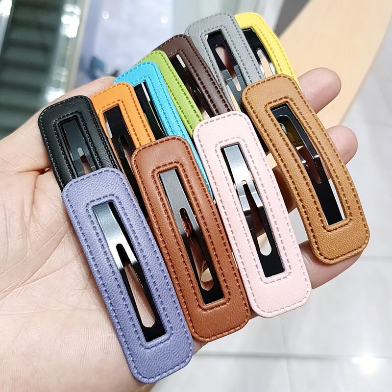 한국 스타일 신상 패션 가죽 직사각형 헤어핀 레트로 사각형 스타일 BB 클립 앞머리 클립