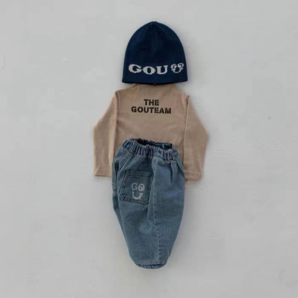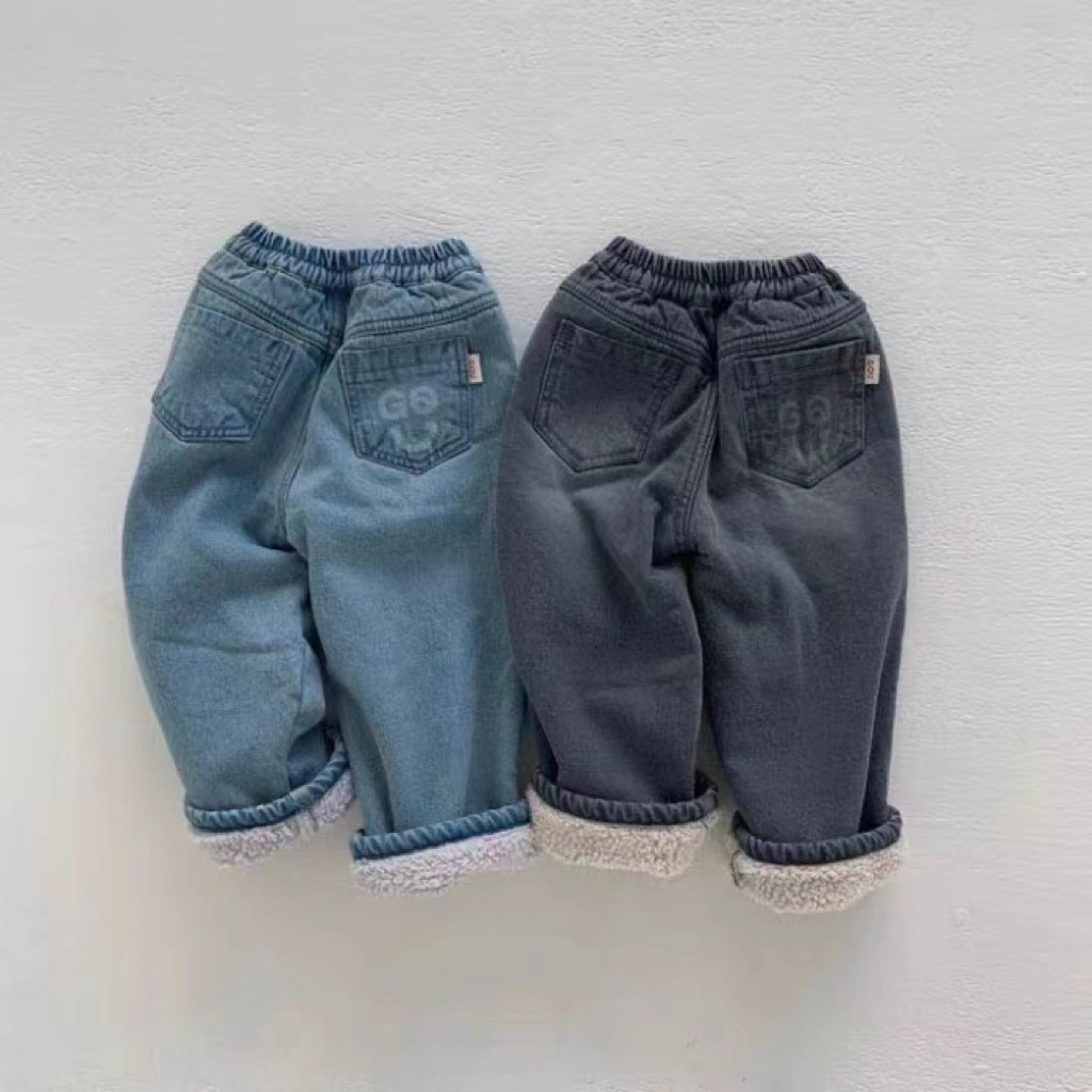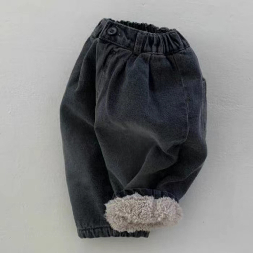 기모 두께의 한국 스타일 데님 바지 가을과 겨울 방풍 따뜻한 소년 소녀 아기 아웃웨어 모든 매치 트렌디 아동 바지스토어 가기