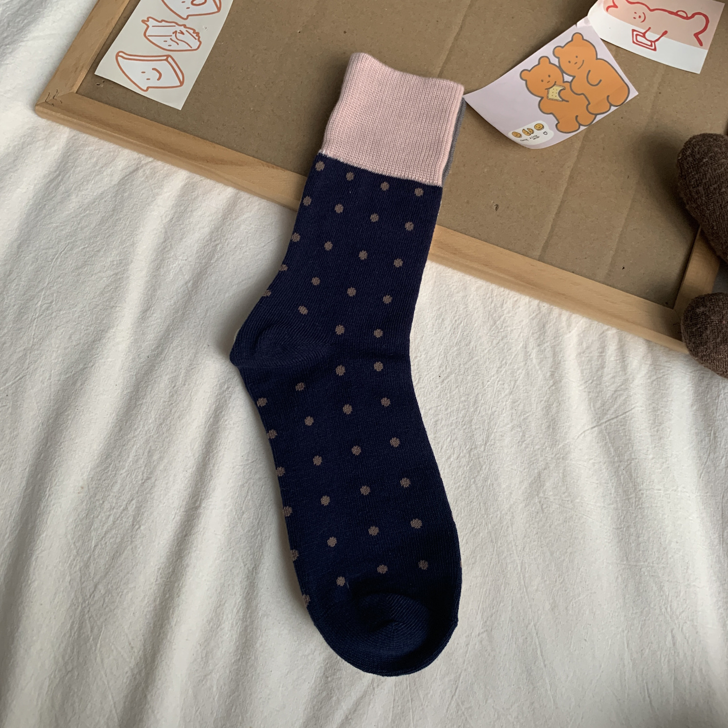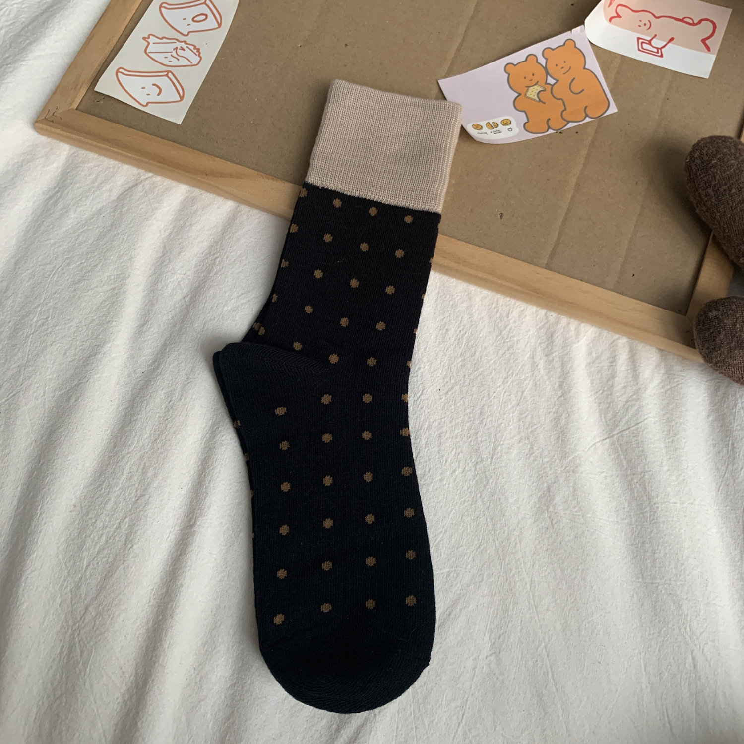 우아한 작은 점무늬 중목 양말 여성용 봄 여름 신상 양말 개성 있는 일상용 배색 레트로 양말 한국 숲풍 양말스토어 가기