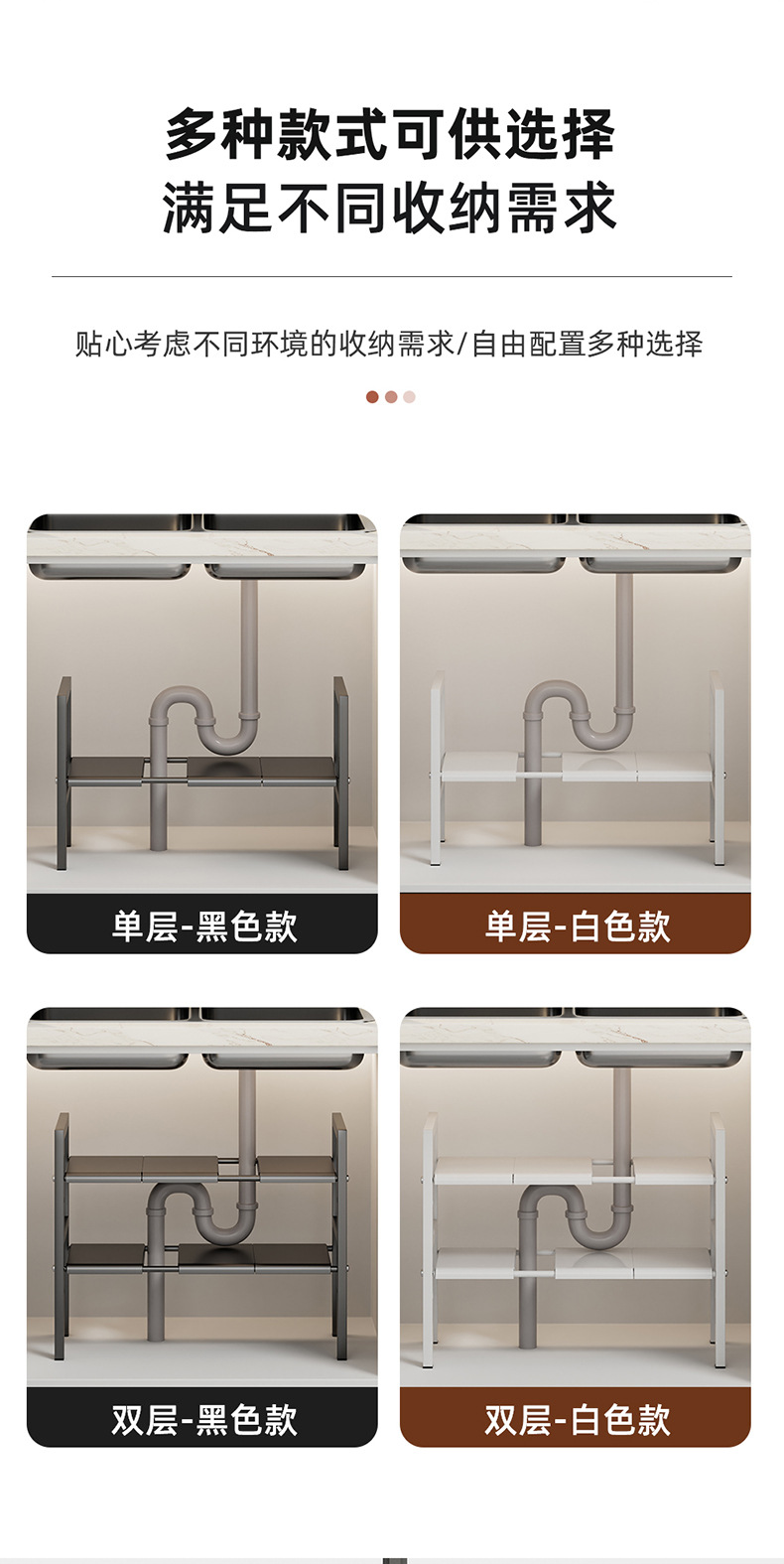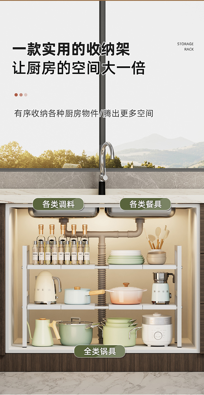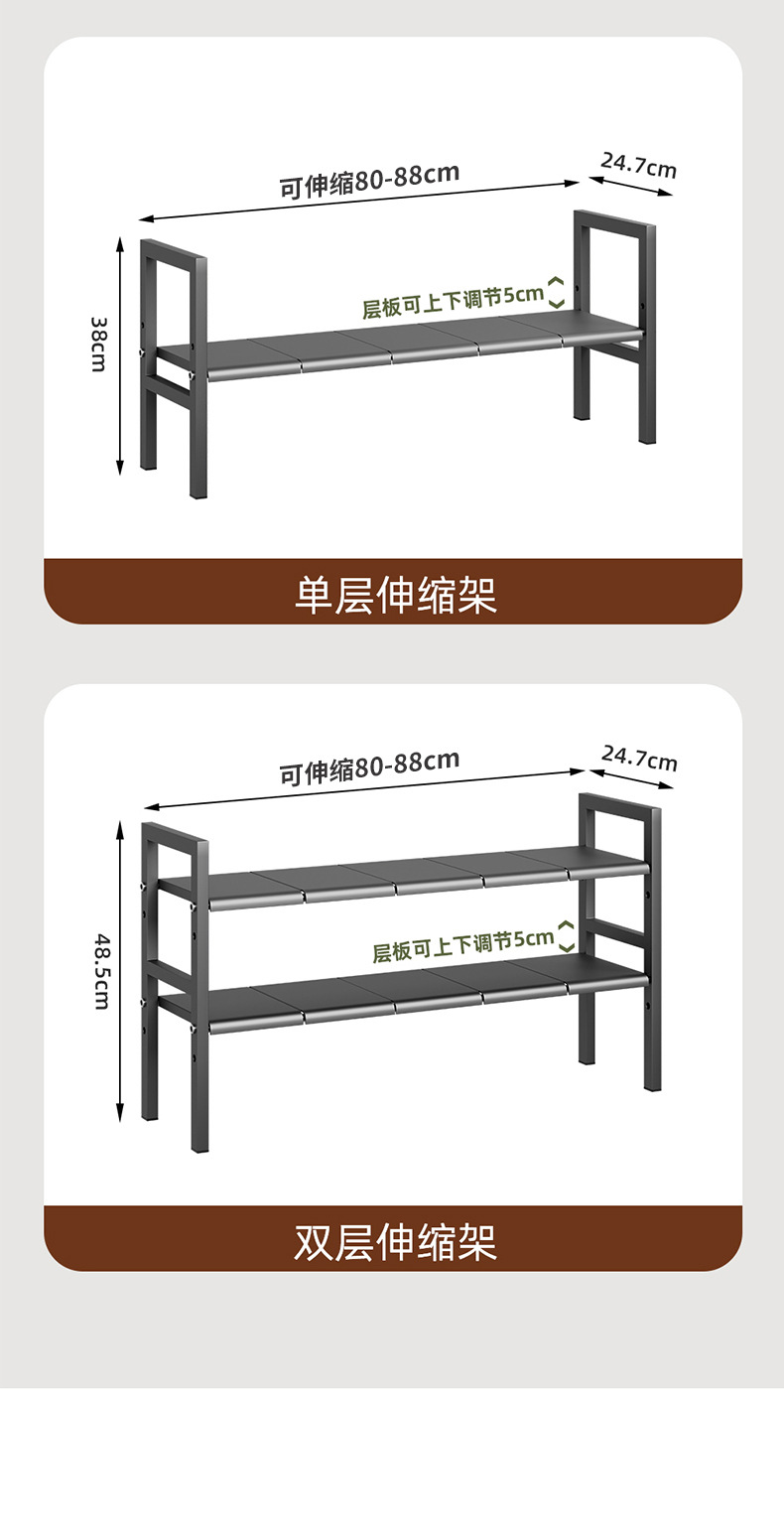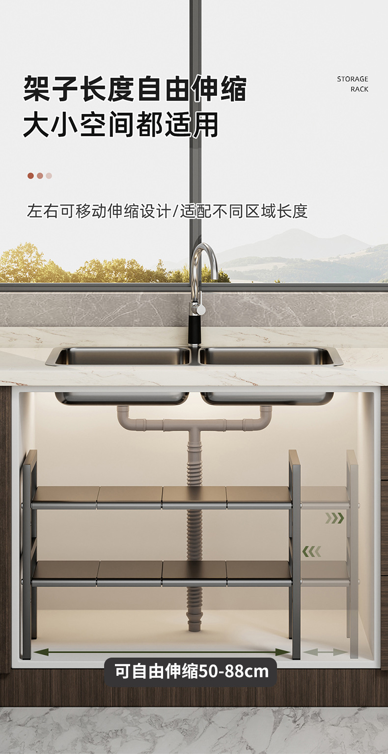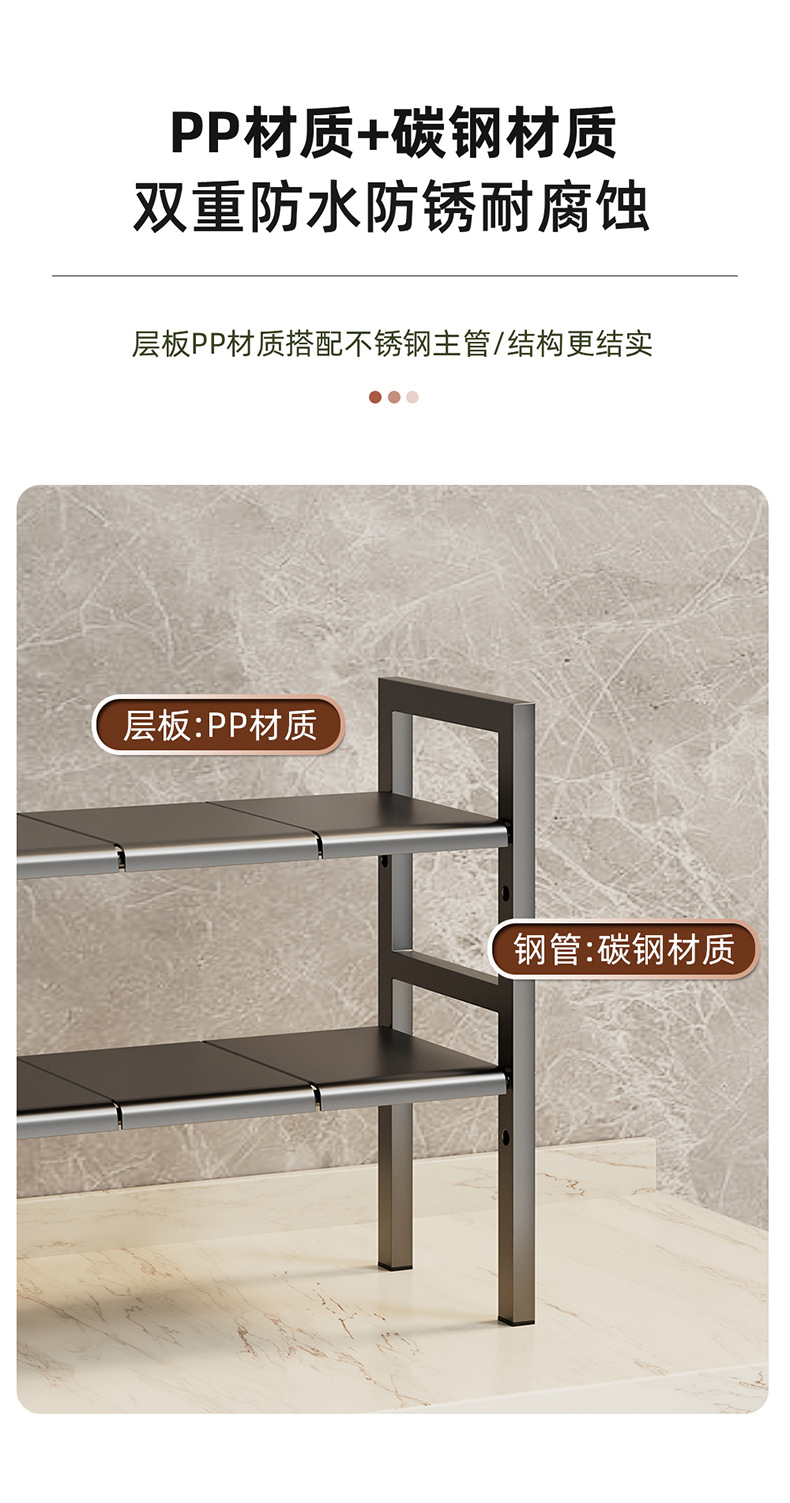 낮은 싱크 스토리지 랙 카운터 탑 캐비닛 레이어드 랙 다목적 스토리지 랙 주방 스토리지 랙 높이 조정 가능스토어 가기