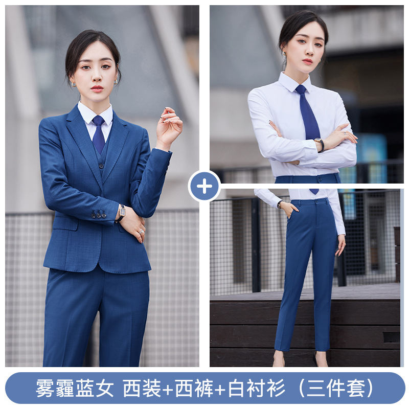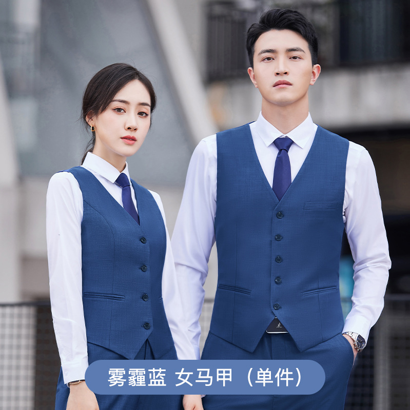 • YRNN-YR8898 여성 헤이즈 블루 세트 + 헤이즈 블루 조끼 + TL021 화이트 셔츠