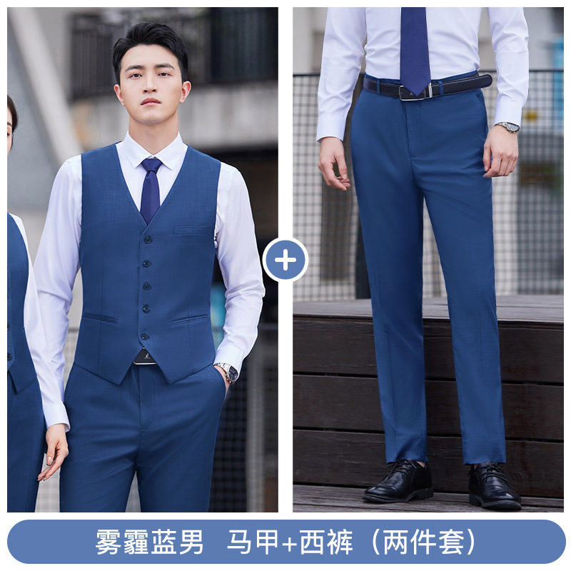 • YRNN-YR8898 남성 헤이즈 블루 세트 + 헤이즈 블루 팬츠 + 헤이즈 블루 조끼
