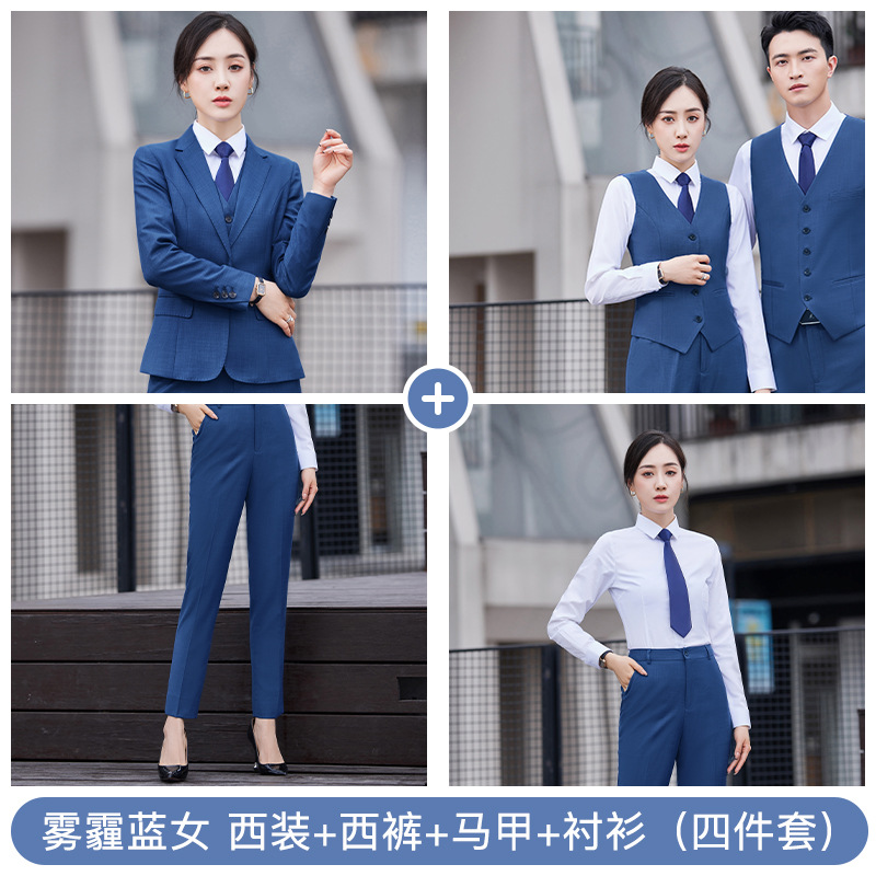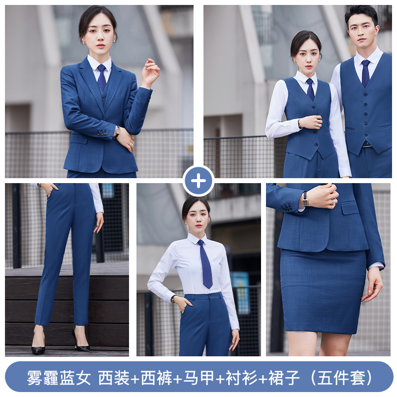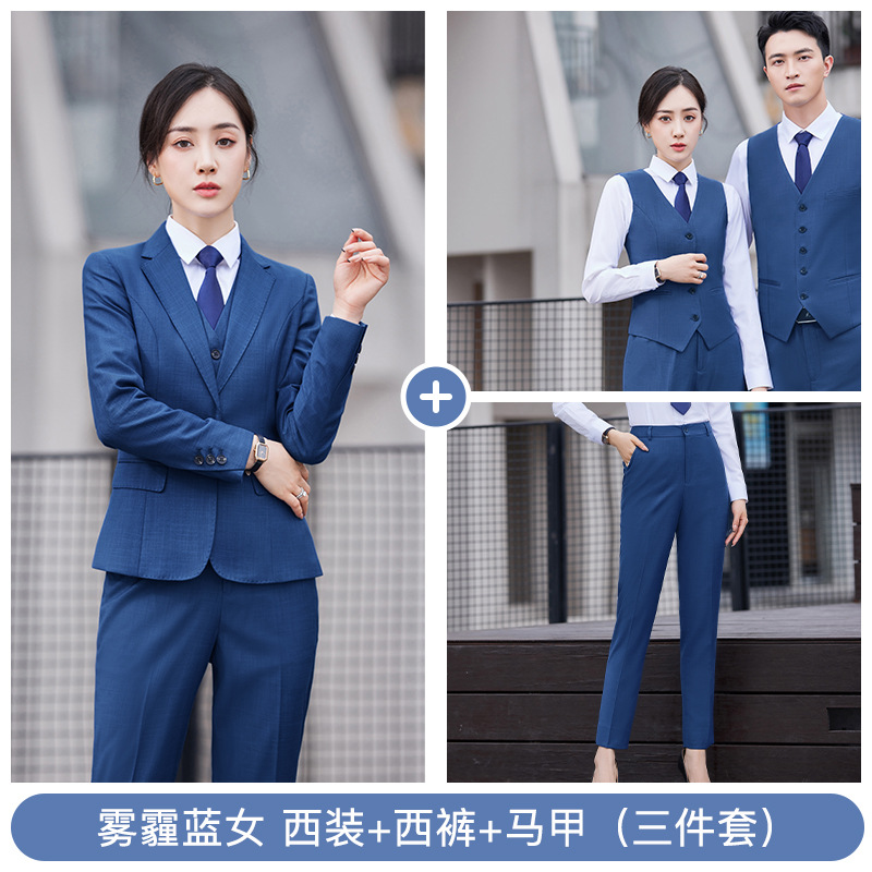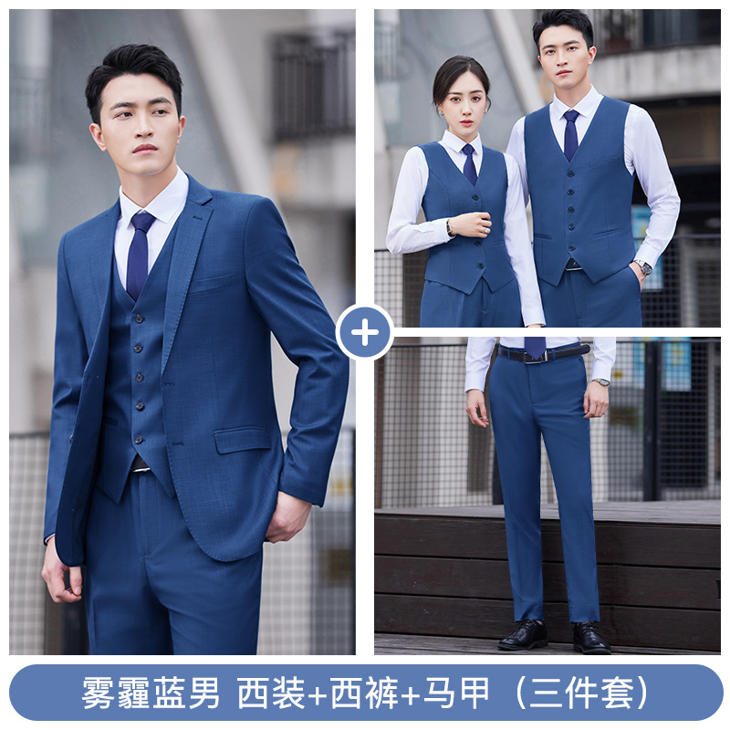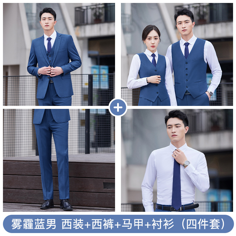 남자의 비즈니스 세트 남자와 여자의 같은 스타일 스모그 블루 세트 원피스 작업복 은행 판매 도구 4s 상점 직업스토어 가기
