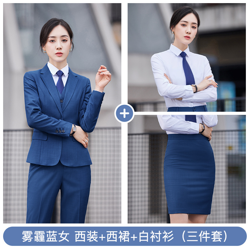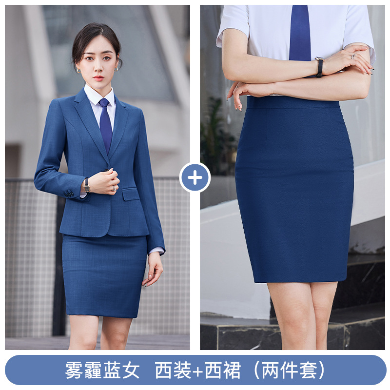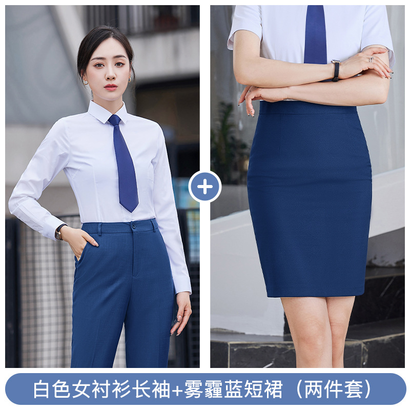 • YRNN-YR8898 여성 헤이즈 블루 세트 + 헤이즈 블루 스커트 + TL021 화이트 셔츠