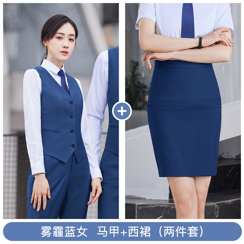 • YRNN-YR8898 여성 헤이즈 블루 조끼 + 헤이즈 블루 스커트