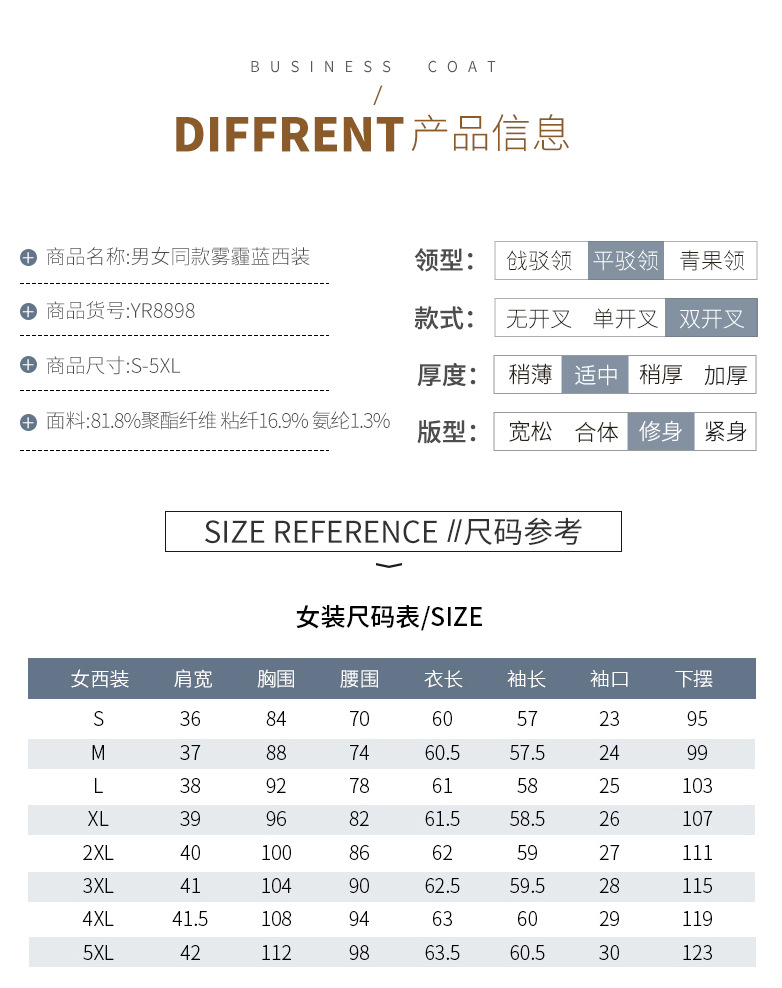 • YRNN-YR8898 여성용 헤이즈 블루 세트 + 헤이즈 블루 조끼 + 헤이즈 블루 스커트