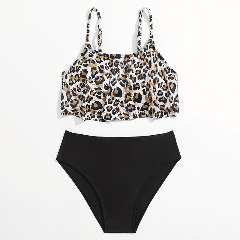 크로스 보더 AliExpress 레오파드 무늬 어린이 수영복 2023 새로운 유럽과 미국 어린이 소녀 해변 휴가 온천 수영복