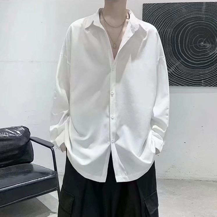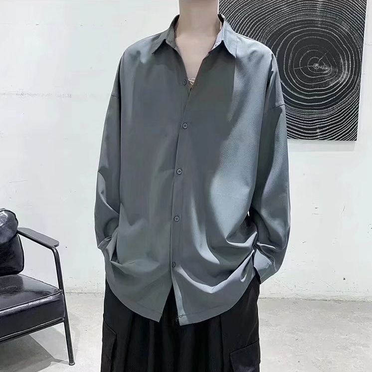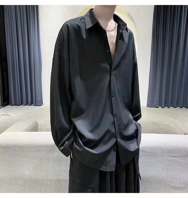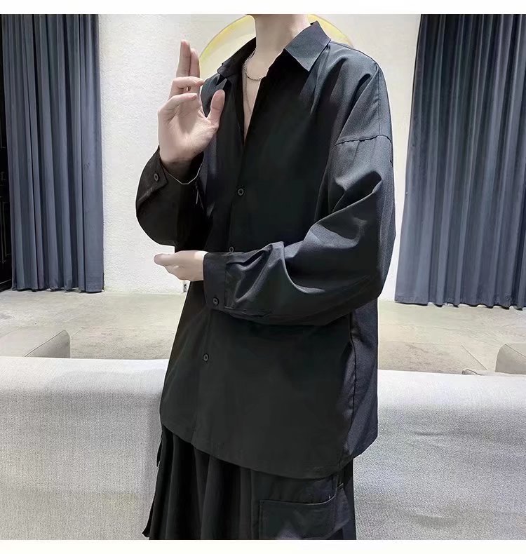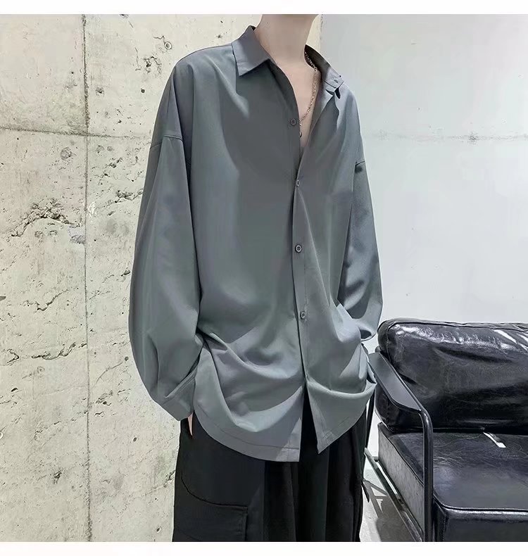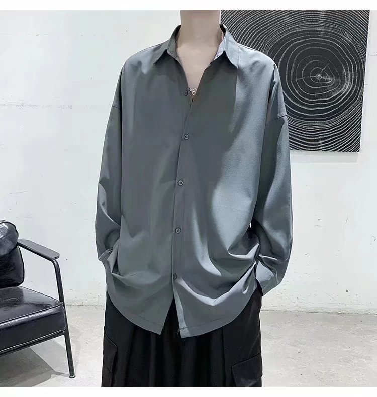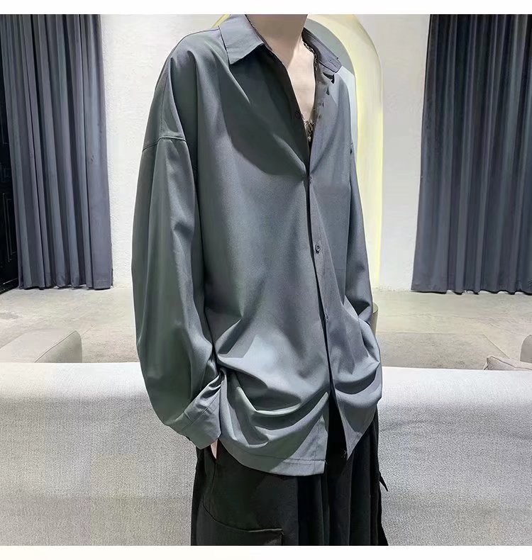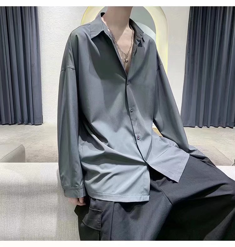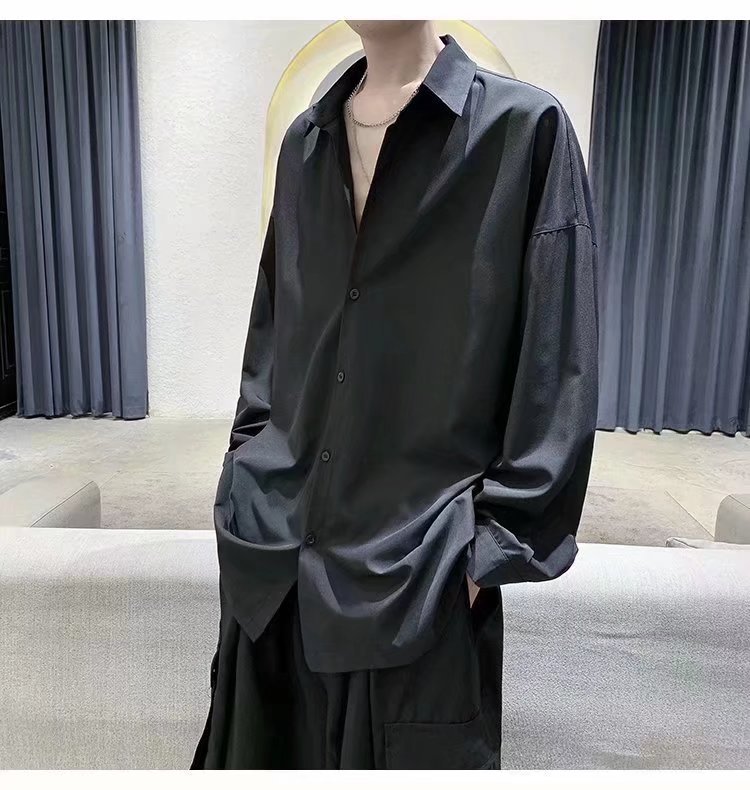 드레이프 셔츠 한국식 세련된 긴팔 셔츠 남성과 젊은 남성용 긴팔 셔츠 커플 잘 생긴 캐주얼 셔츠스토어 가기