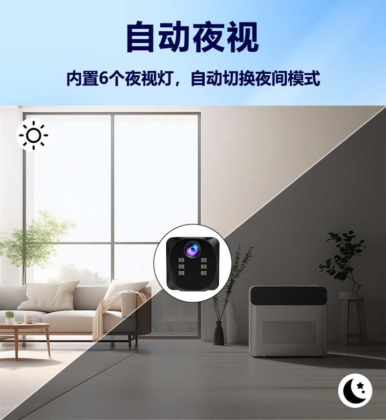 200万高清录像,Wifi远程查看,移动报警,高光夜视,广角140度、