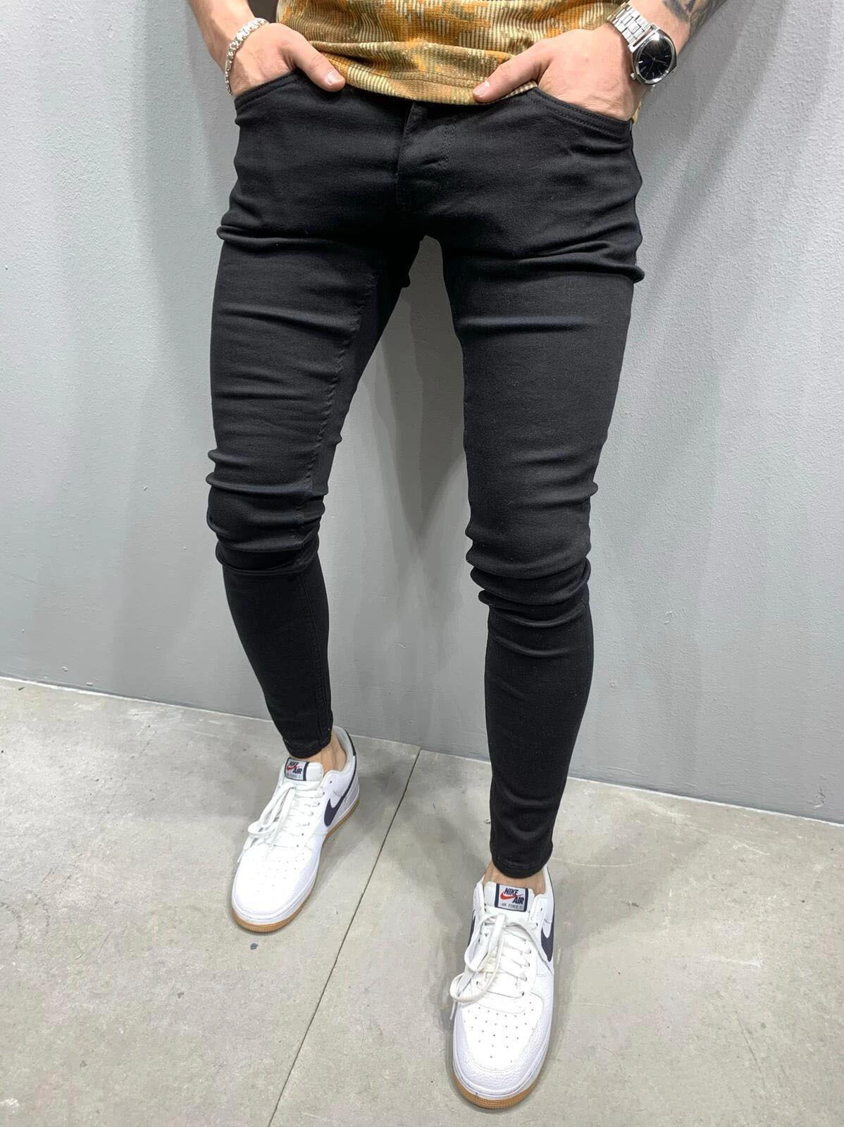 TEMU 대외 무역 AliExpress 국경 간 유럽과 미국 남성 Jindian 블랙 스트레치 타이트 피트 청바지 새로운 스타일