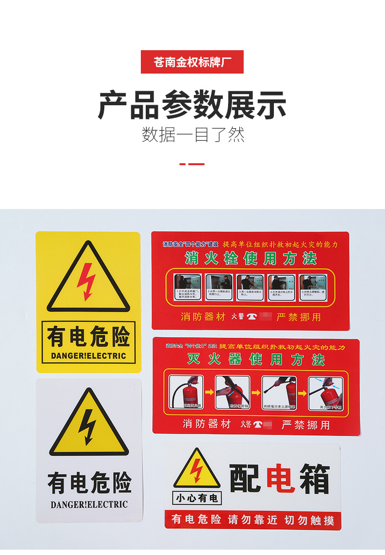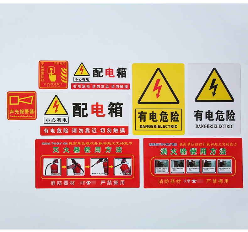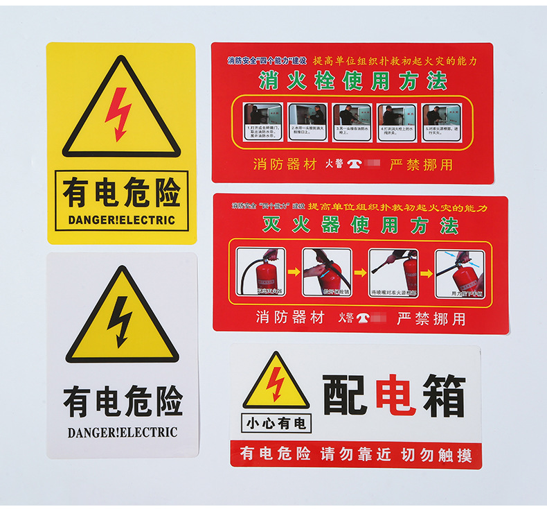 소화전 소화기 표지판, 유통 상자, PVC 안전 표지판, 전기 위험 경고 표지판 사용 지침