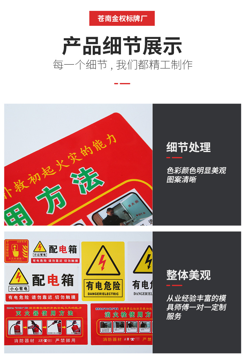 소화전 소화기 표지판, 유통 상자, PVC 안전 표지판, 전기 위험 경고 표지판 사용 지침스토어 가기