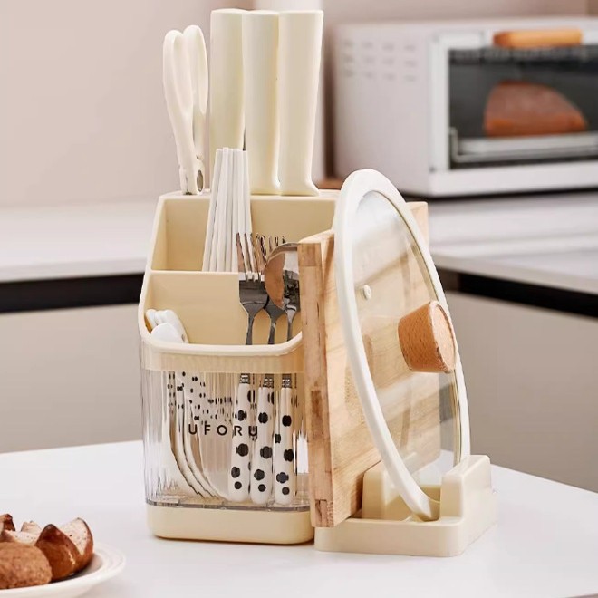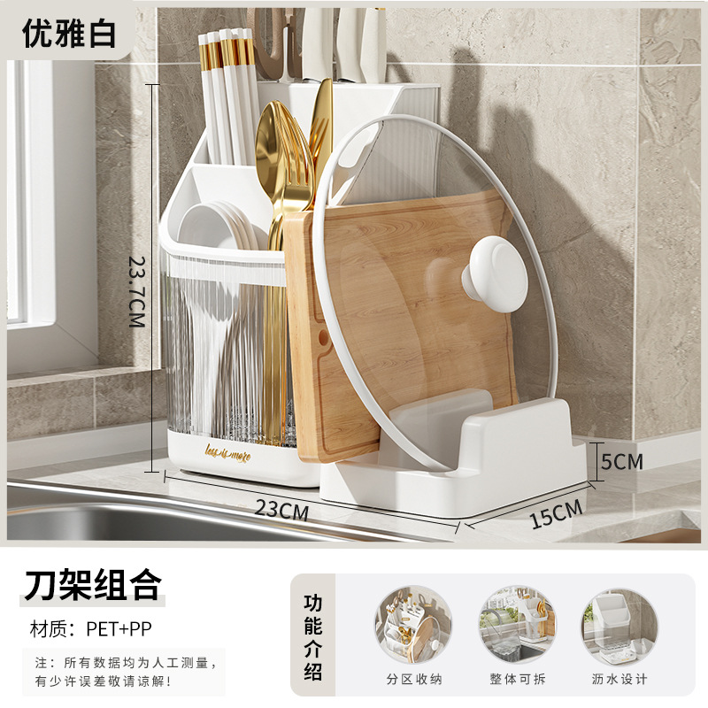 나이프 랙 다기능 저장 랙 주방 식품 등급 배수 플라스틱 나이프 젓가락 통합 칼 랙 저장 랙스토어 가기