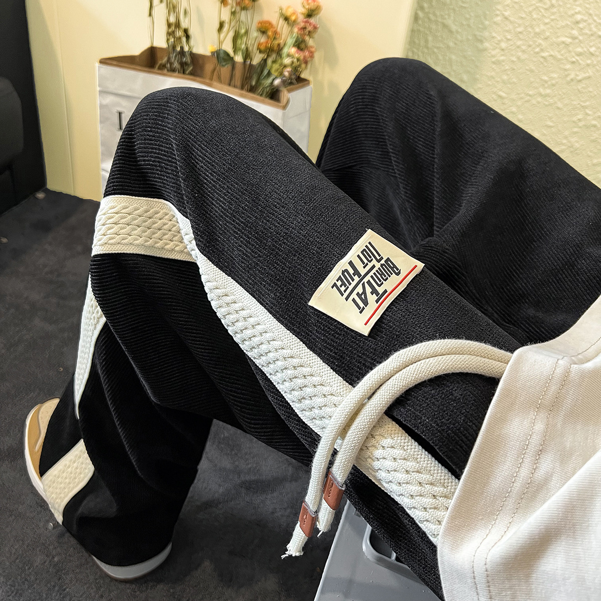 코듀로이 팬츠 남성용 유행 브랜드 짠 밴드 스트라이프 라벨 인기있는 스타일 모든 매치 유행 특유의 와이드 레그 캐주얼 팬츠