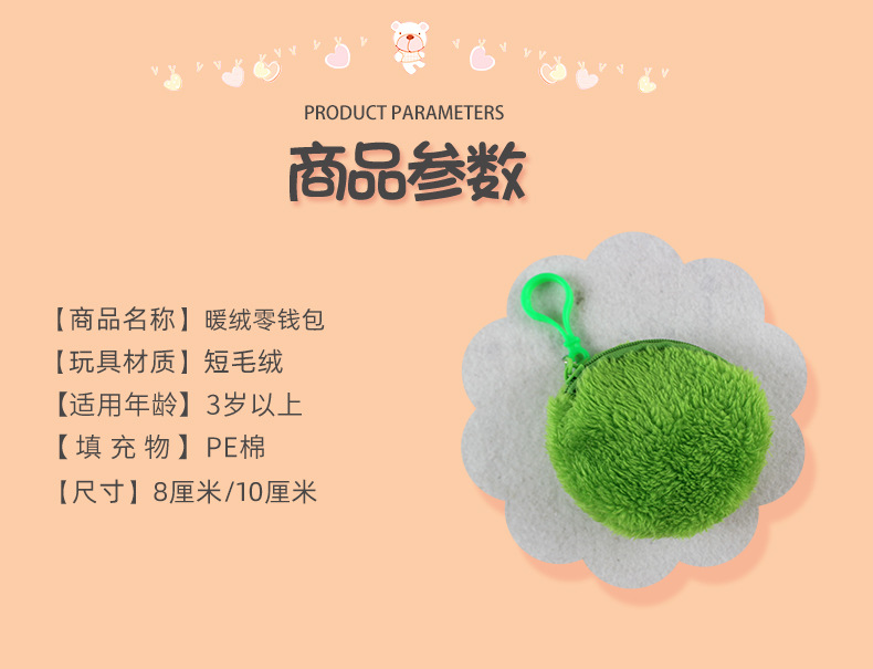 도매 8cm 따뜻한 벨벳 캔디 컬러 동전 지갑 라운드 키 동전 저장 작은 지갑 긴 머리 배낭 장식품