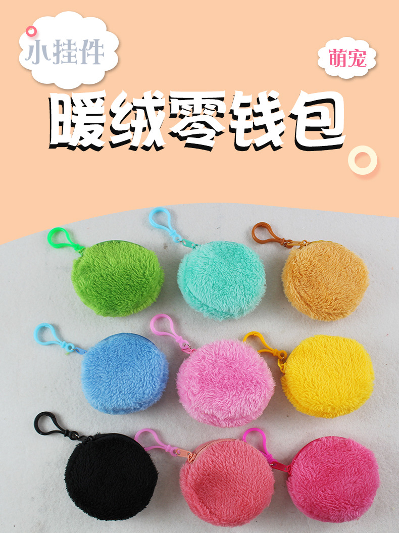 도매 8cm 따뜻한 벨벳 캔디 컬러 동전 지갑 라운드 키 동전 저장 작은 지갑 긴 머리 배낭 장식품스토어 가기