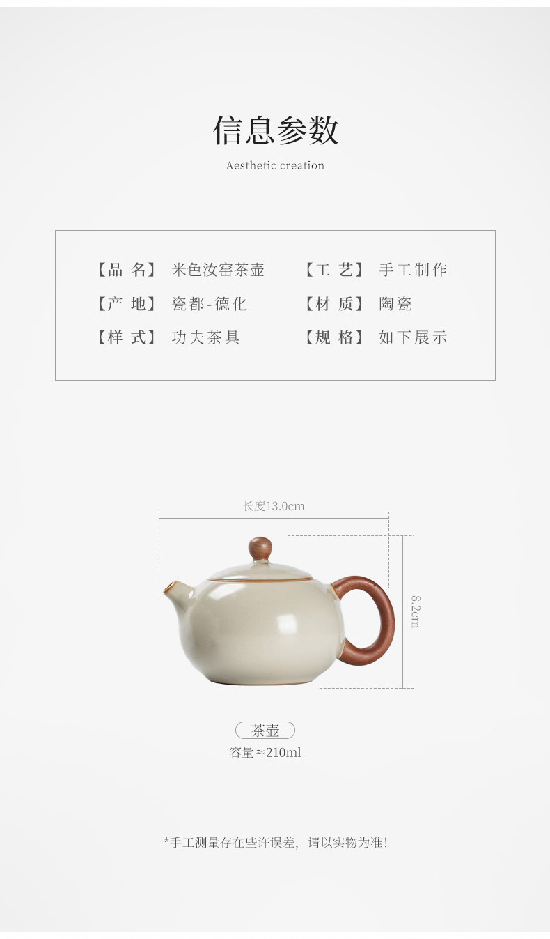 베이지 Ruyao 대형 Xishi 냄비 쿵푸 다도 차 세트 차 주전자 양조 가정용 세라믹 차 메이커 주전자스토어 가기