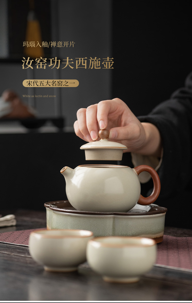 베이지 Ruyao 대형 Xishi 냄비 쿵푸 다도 차 세트 차 주전자 양조 가정용 세라믹 차 메이커 주전자