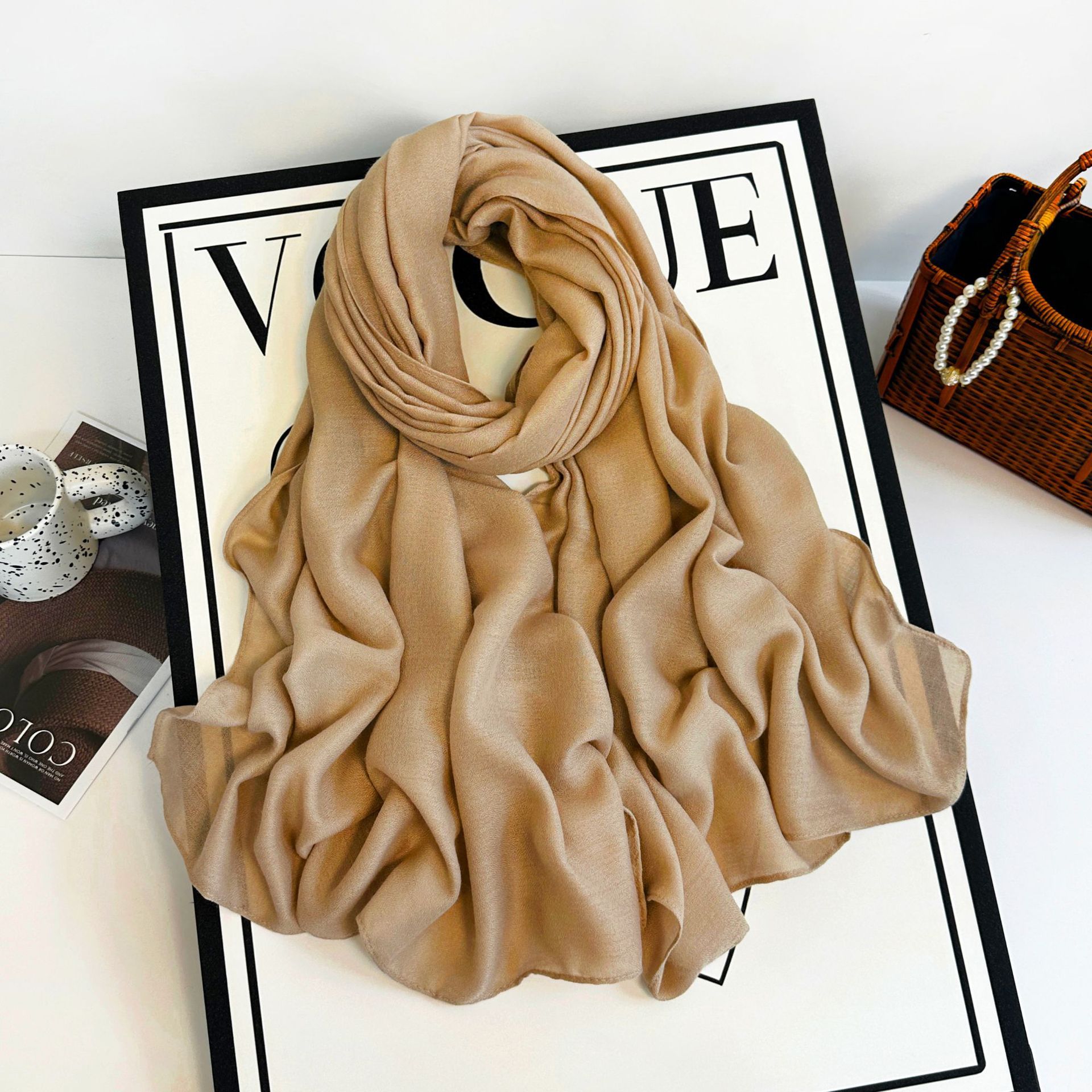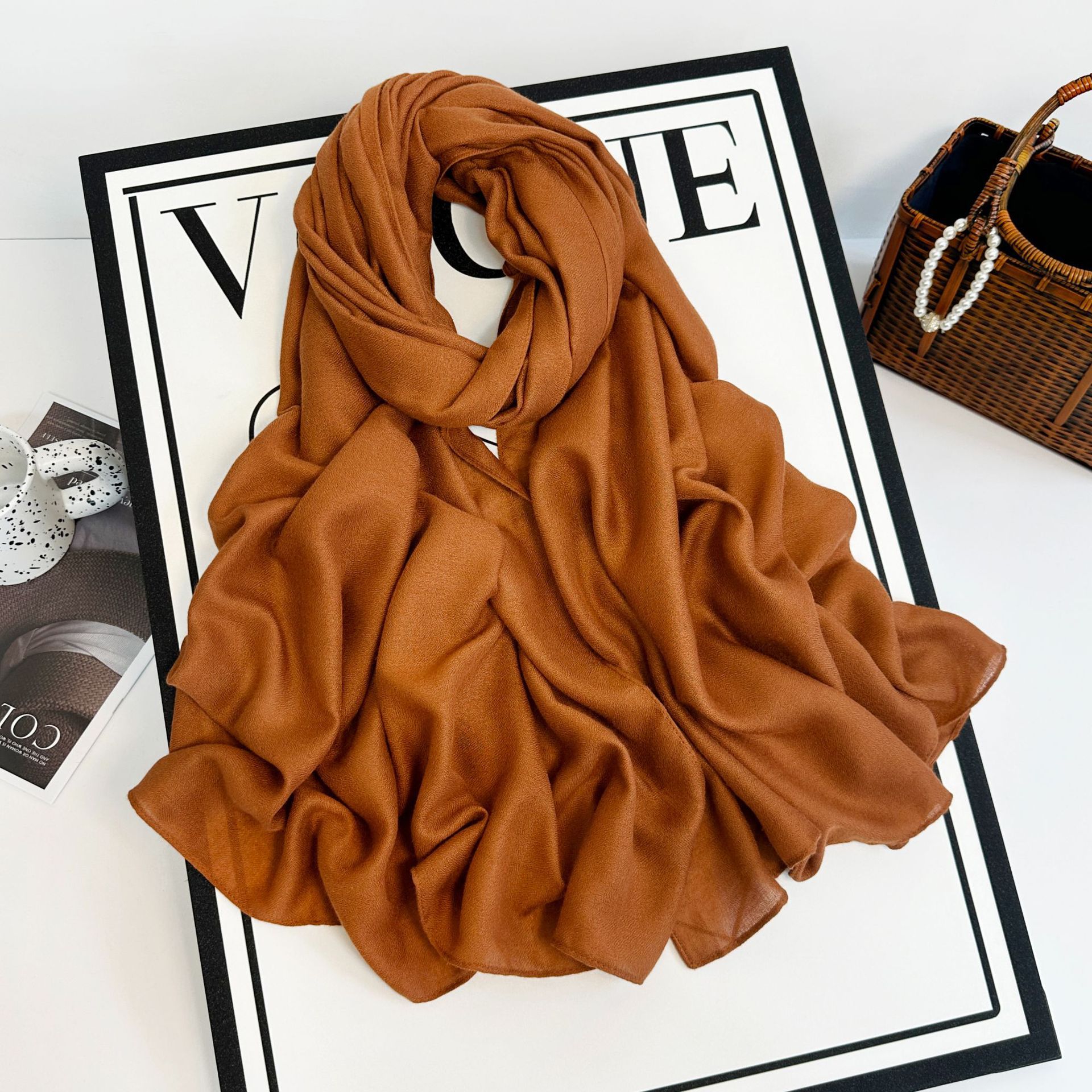 2025 새로운 솔리드 컬러 모조 코튼과 린넨 거즈 스카프 모조 진주 쉬폰 롱 스카프 단색 말레이시아 여성 머리 스카프 스카프스토어 가기