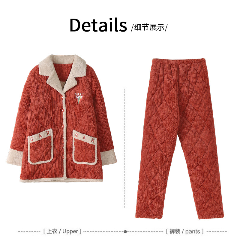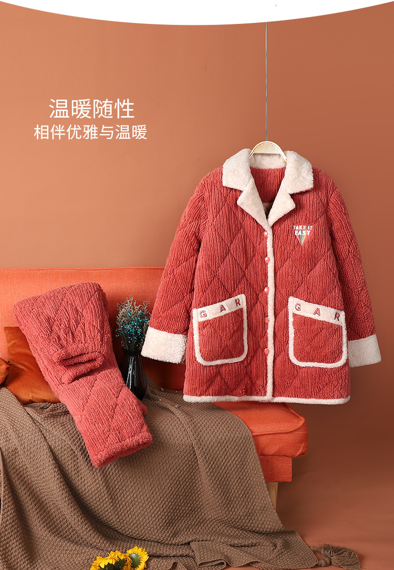 잠옷 여자의 겨울 산호 양털 플란넬 면 패딩 코트 3 층 두꺼운 슈퍼 두꺼운 기모 가정 옷 가을과 겨울