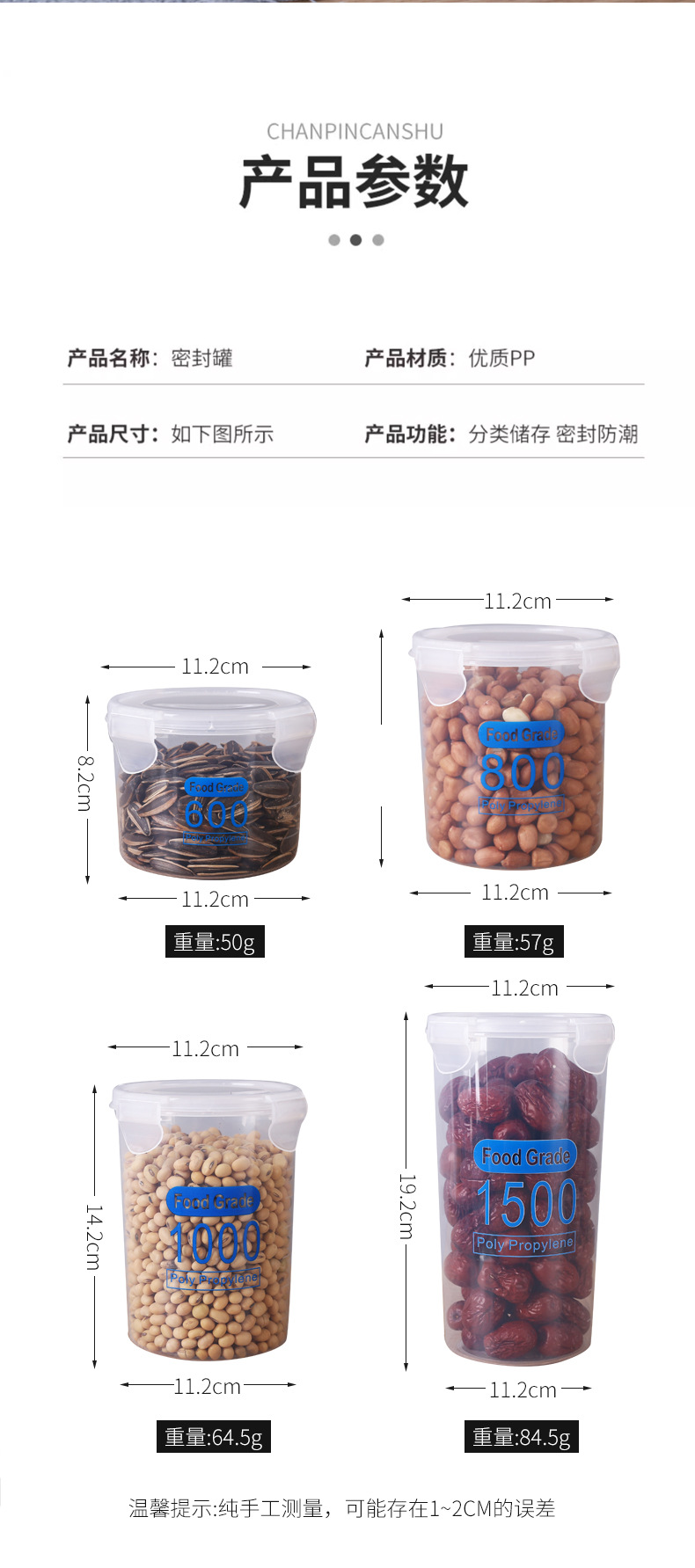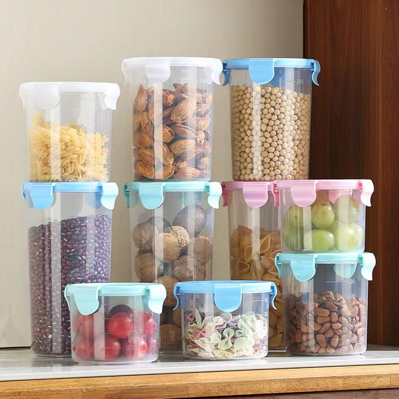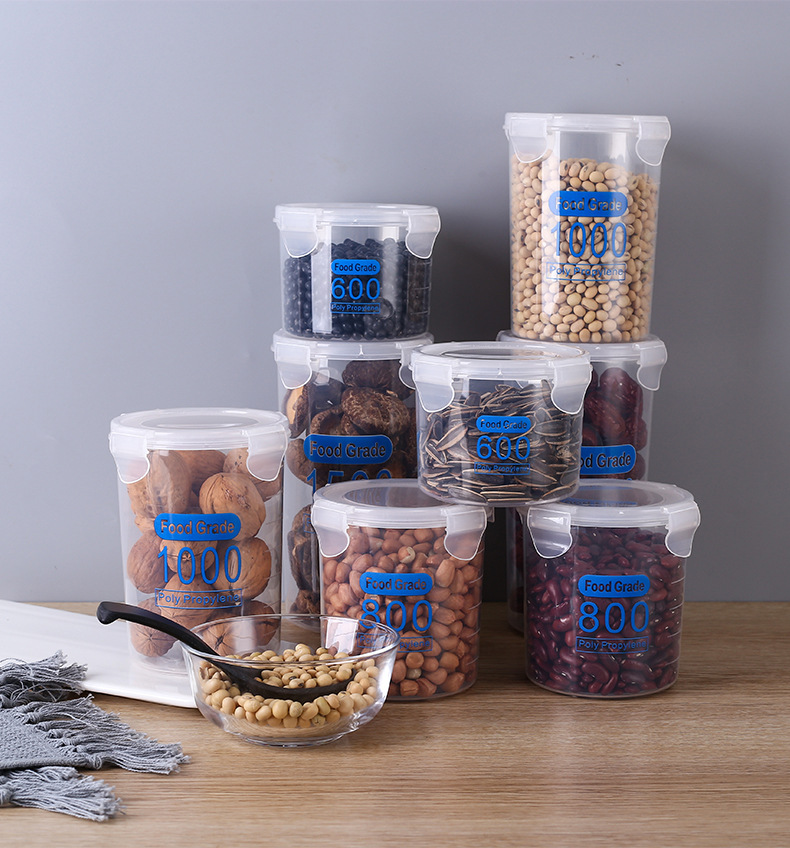 주방 밀봉 항아리 곡물 보관 병 원형 보관 항아리 가정용 투명 보관 상자 신선도 보관 상자 보관 용기