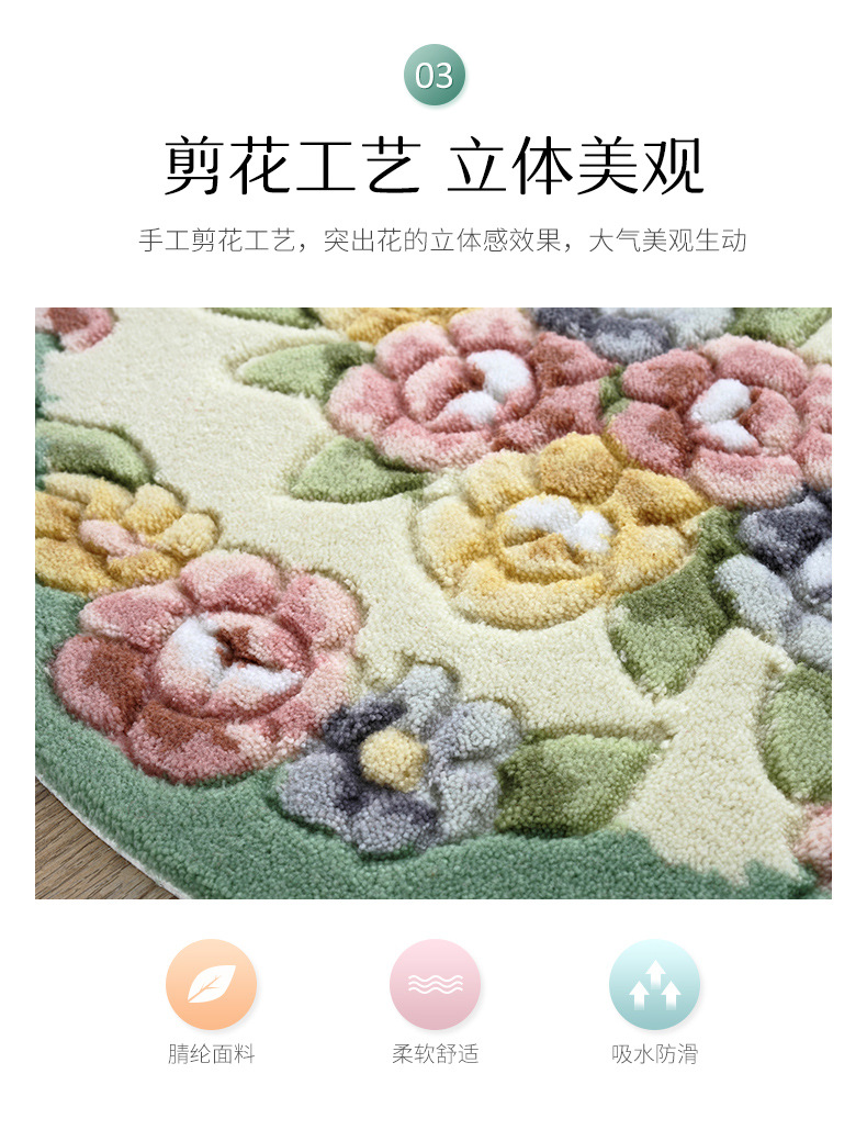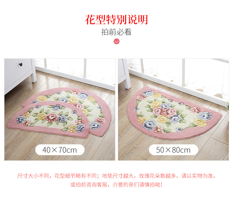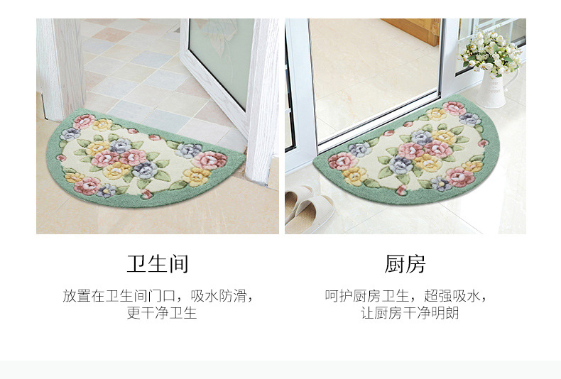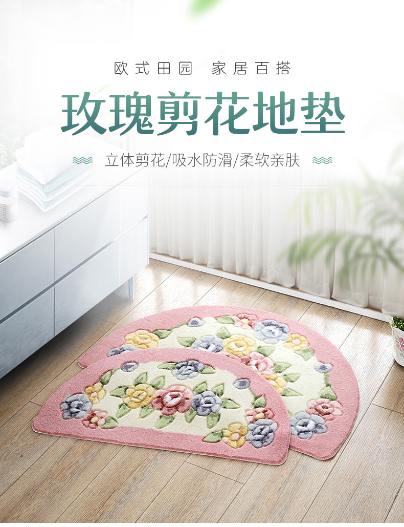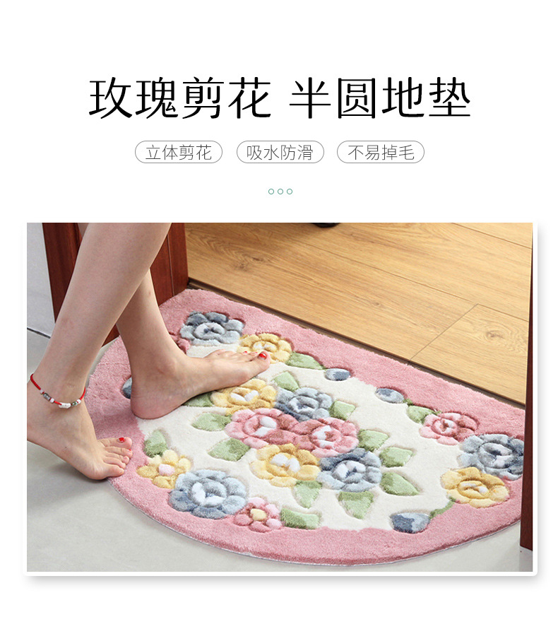 Meixin 로즈 컷 꽃 반원 흡수성 바닥 매트 도어 매트 침실 욕실 문 미끄럼 방지 발 매트