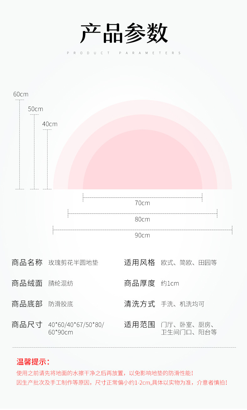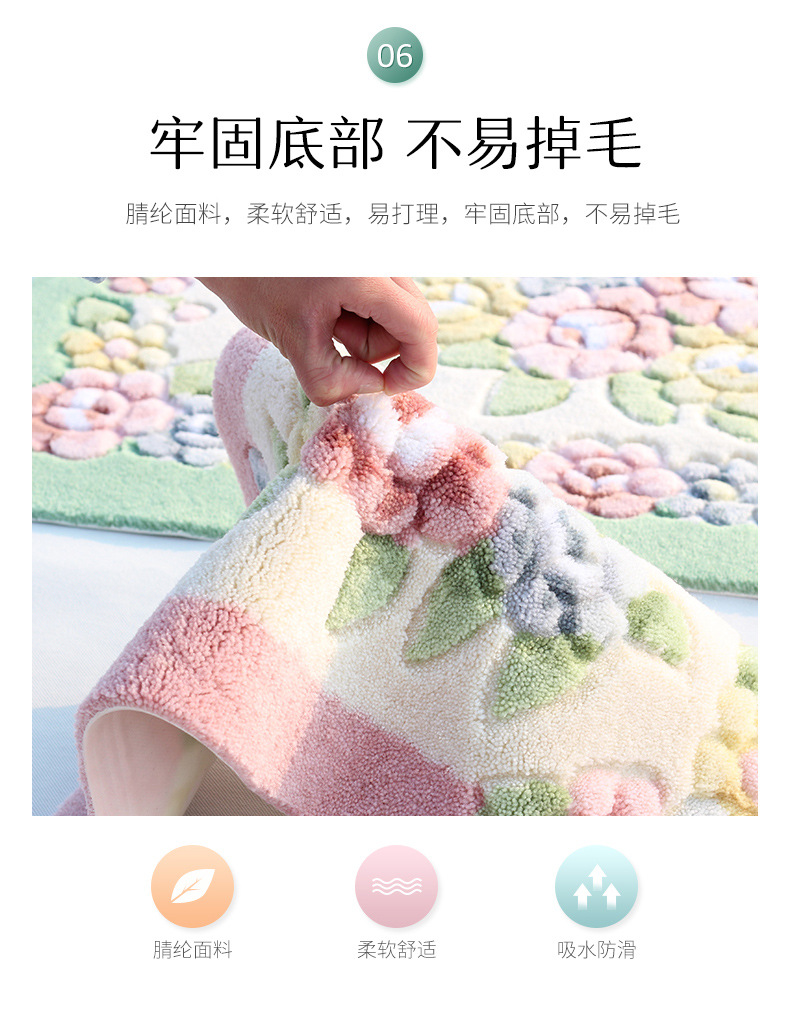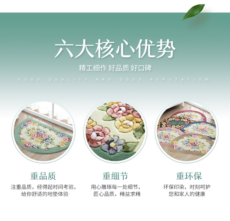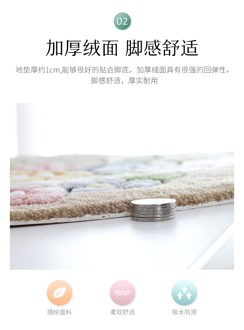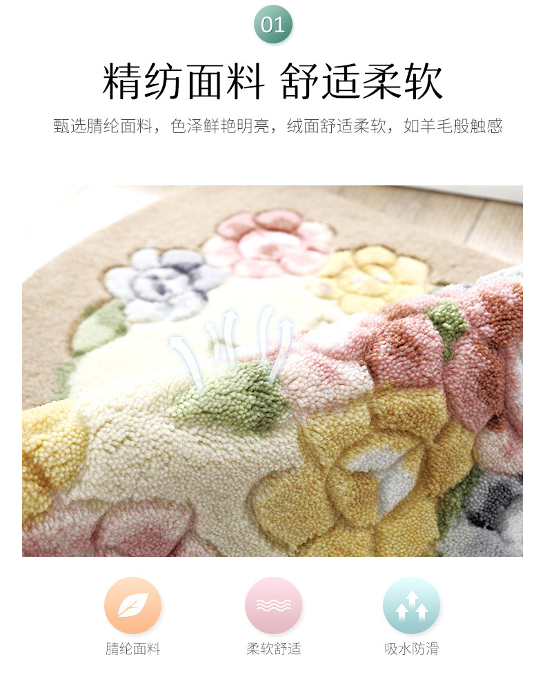 Meixin 로즈 컷 꽃 반원 흡수성 바닥 매트 도어 매트 침실 욕실 문 미끄럼 방지 발 매트