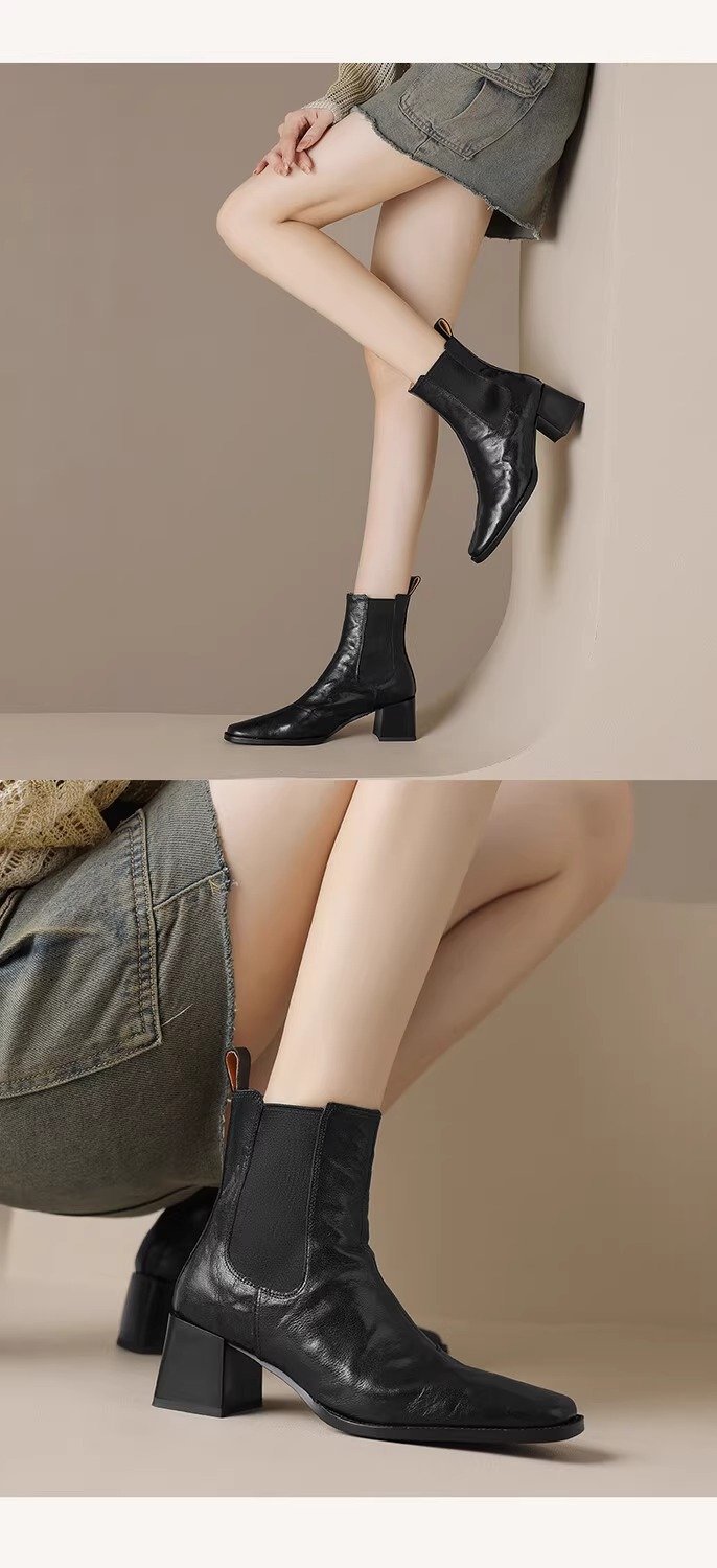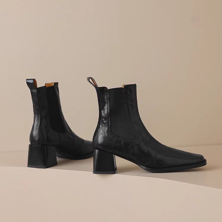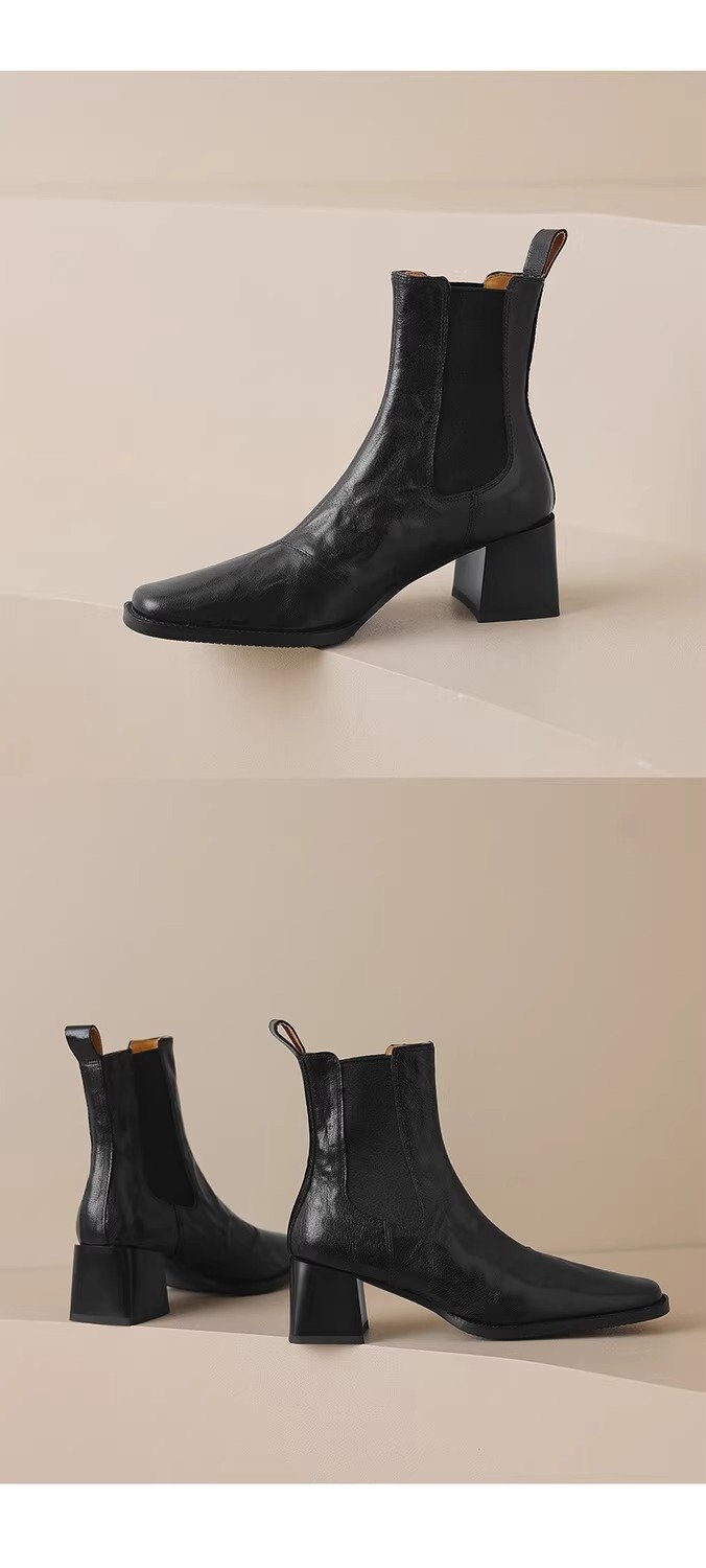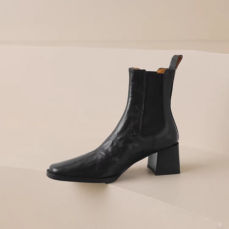 영국 스타일 마틴 부츠 여자의 가을 2023 새로운 빈티지 싱글 부츠 얇은 스트레치 두꺼운 굽 스퀘어 토 짧은 부츠