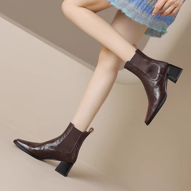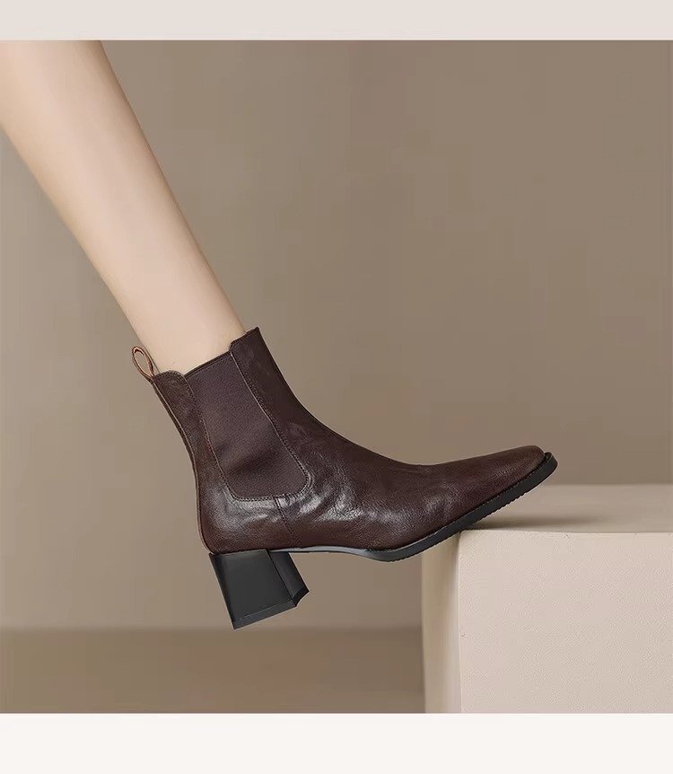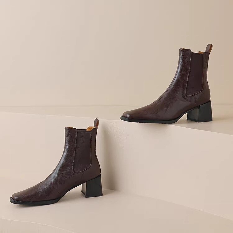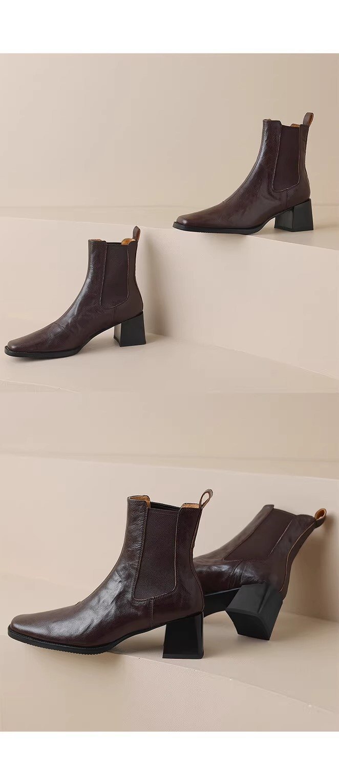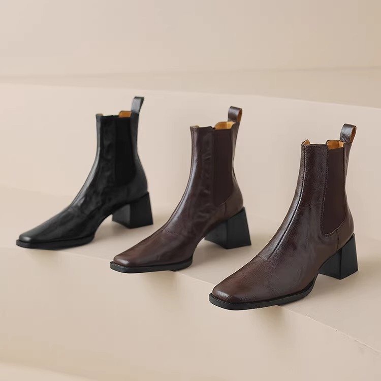 영국 스타일 마틴 부츠 여자의 가을 2023 새로운 빈티지 싱글 부츠 얇은 스트레치 두꺼운 굽 스퀘어 토 짧은 부츠