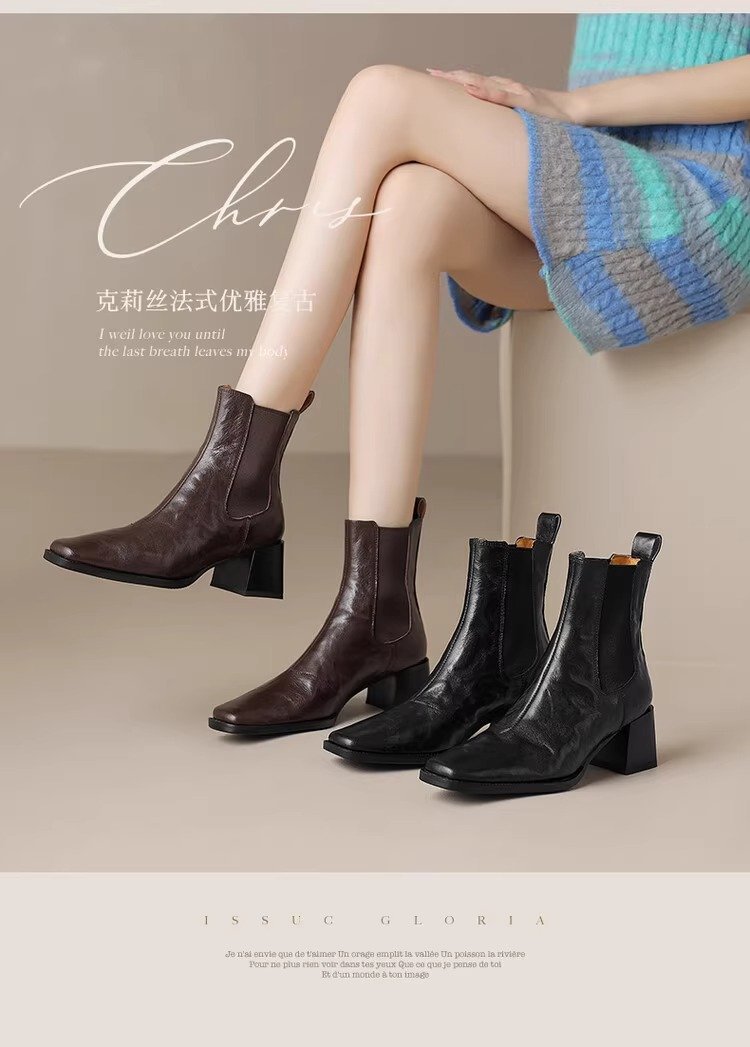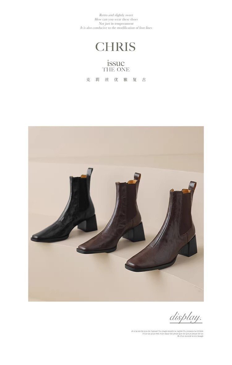 영국 스타일 마틴 부츠 여자의 가을 2023 새로운 빈티지 싱글 부츠 얇은 스트레치 두꺼운 굽 스퀘어 토 짧은 부츠스토어 가기