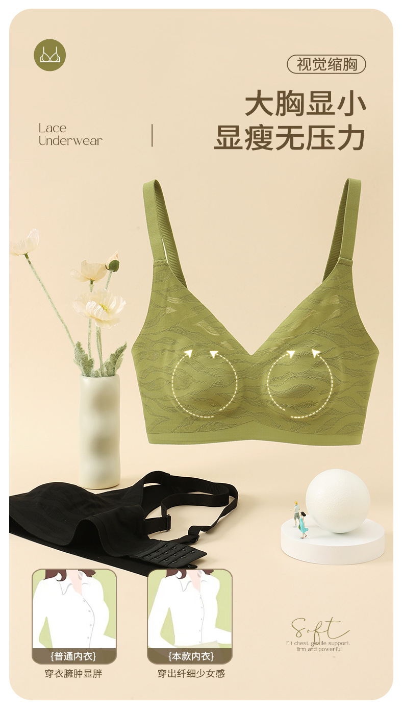 여행 세트 큰 가슴 화려한 작은 가슴 속옷 여성의 원활한 부드러운 지원 푸시 업 비 스틸 링 처짐 방지 액세서리 유방 브래지어