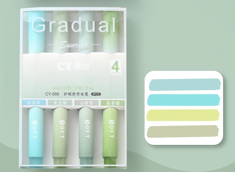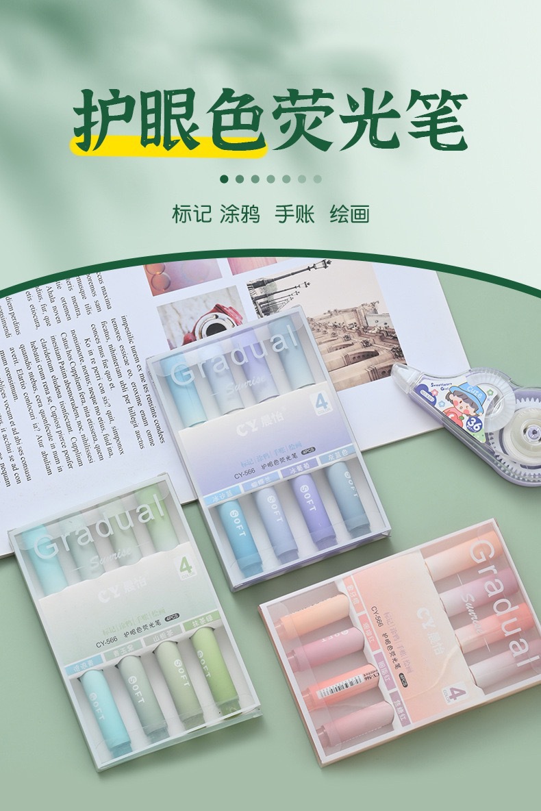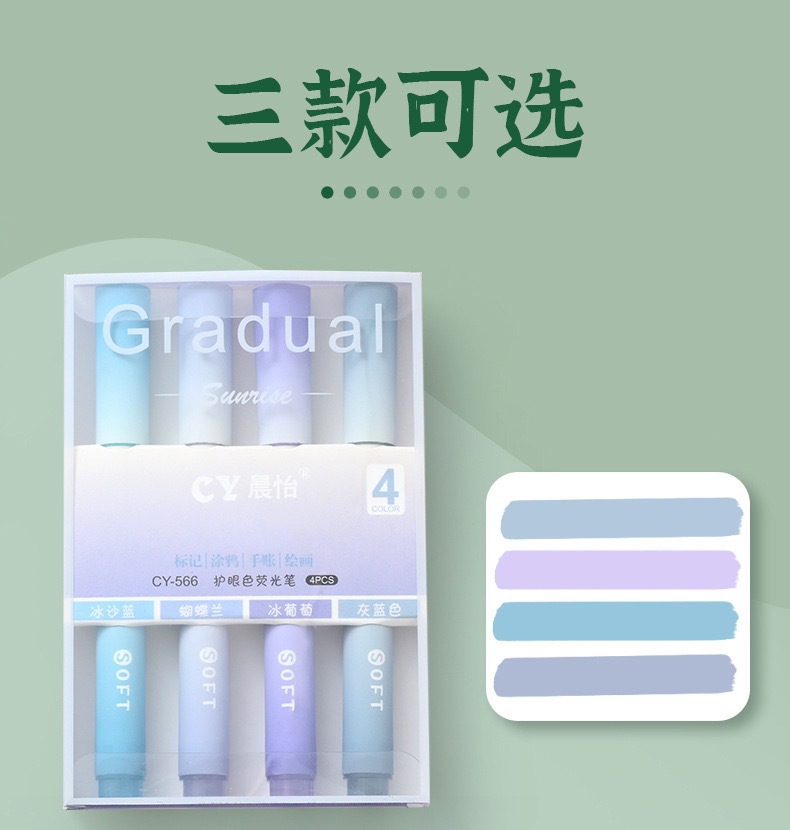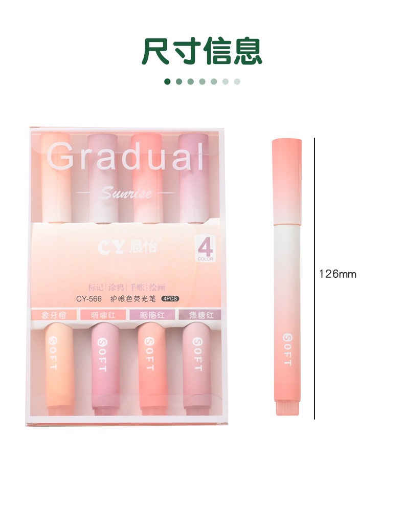 그라디언트 컬러 형광펜 고가치 컬러 키 마크 학생 마커 펜 눈 보호 컬러 대용량 형광펜