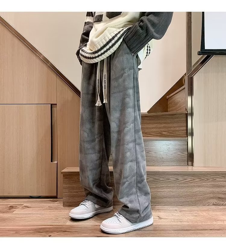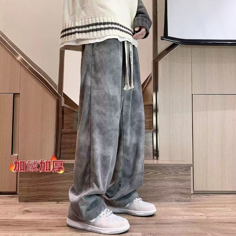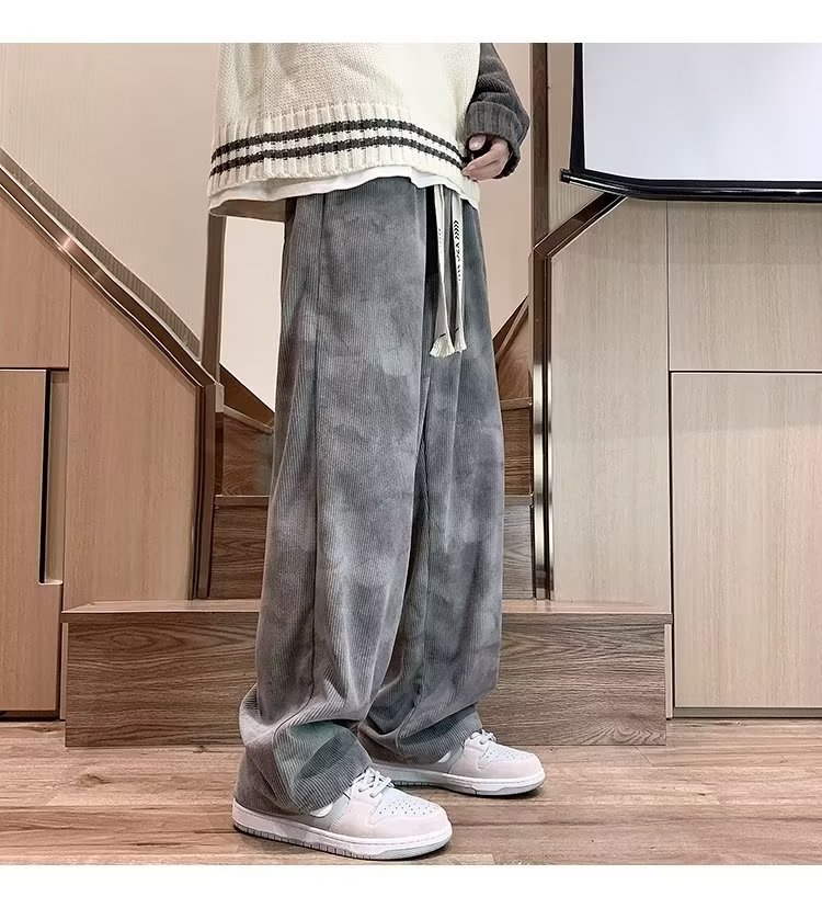 코듀로이 헤비급 시티보이 타이 염색 위생 바지 아메리칸 하이 스트리트 오버사이즈 스트레이트 와이드 레그 팬츠 남성 하이 엔드 센스