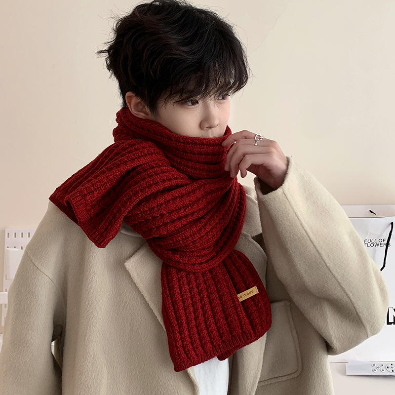 2023 새로운 빨간 스카프 남자의 겨울 따뜻한 단색 한국 두꺼운 니트 울 스카프 남자 친구 유행스토어 가기