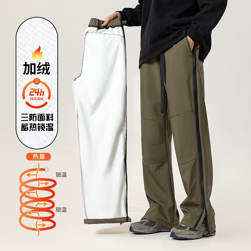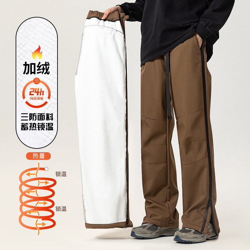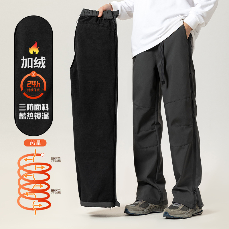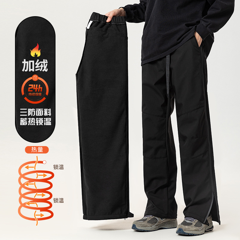 남성용 겨울 트렌디 남성용 두꺼운 기모 등산 바지 느슨한 미국 바지 캐주얼 바지스토어 가기