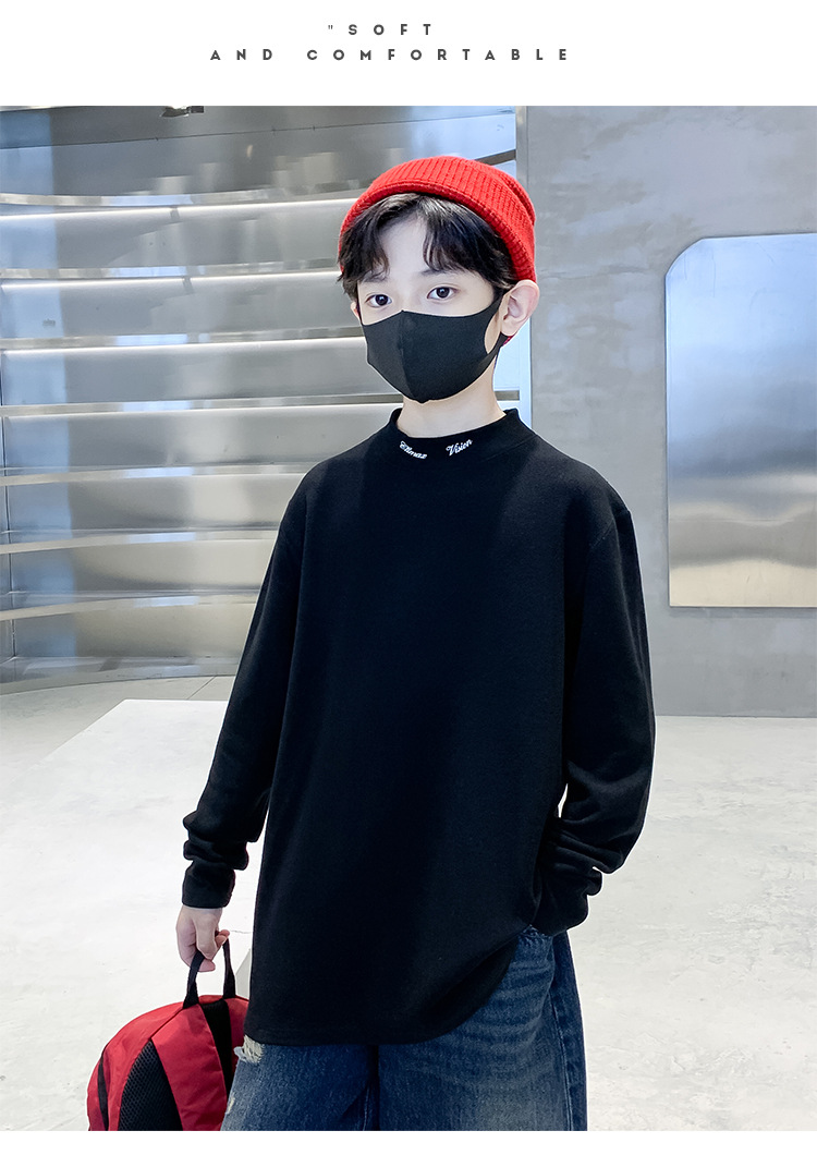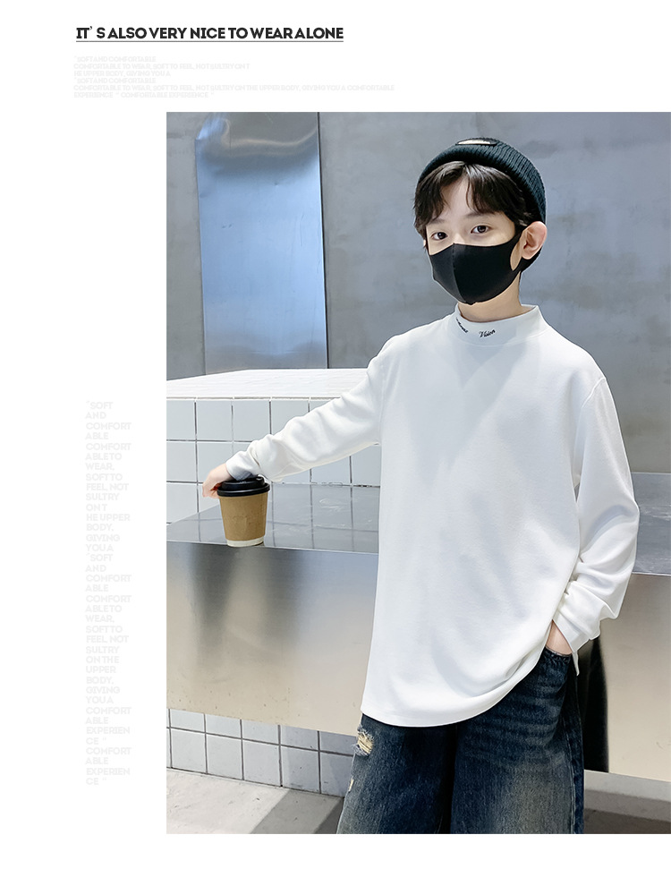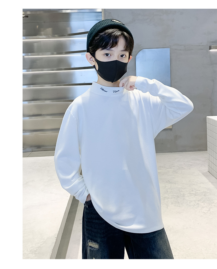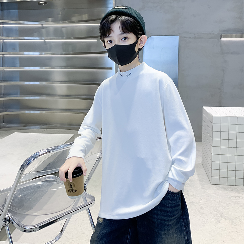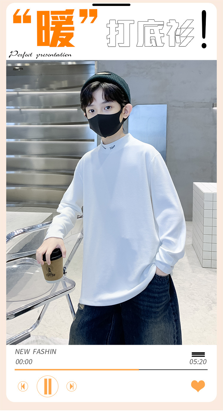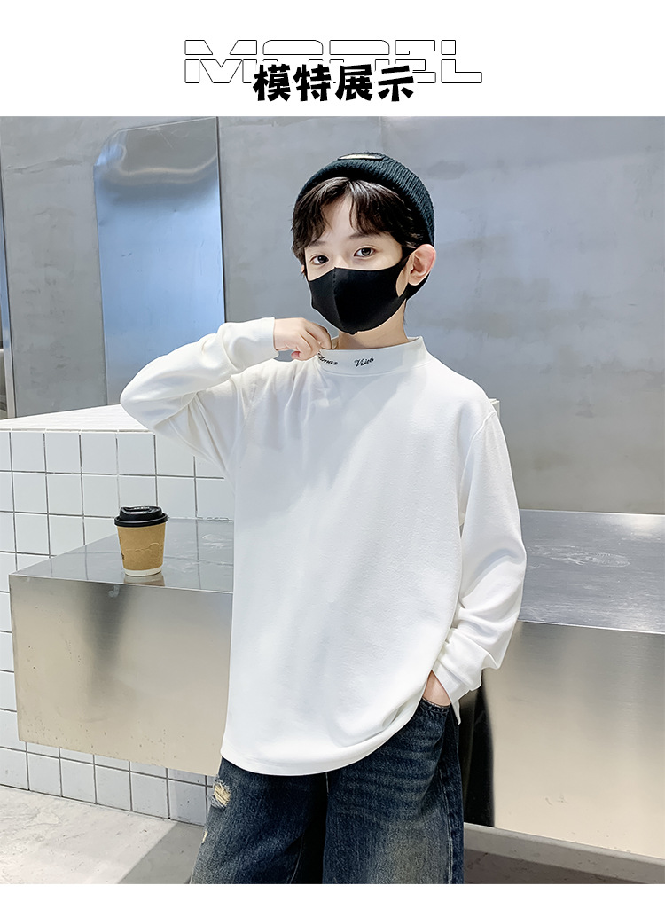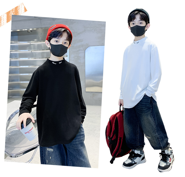 남아 베이스 긴팔 2023 새로운 가을 어린이 겨울 캐주얼 미드 하이 넥 피부 친화적 부드러운 패션 따뜻한 샌딩스토어 가기