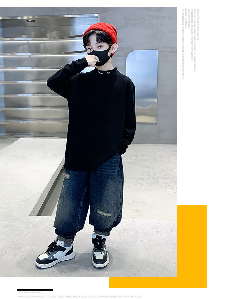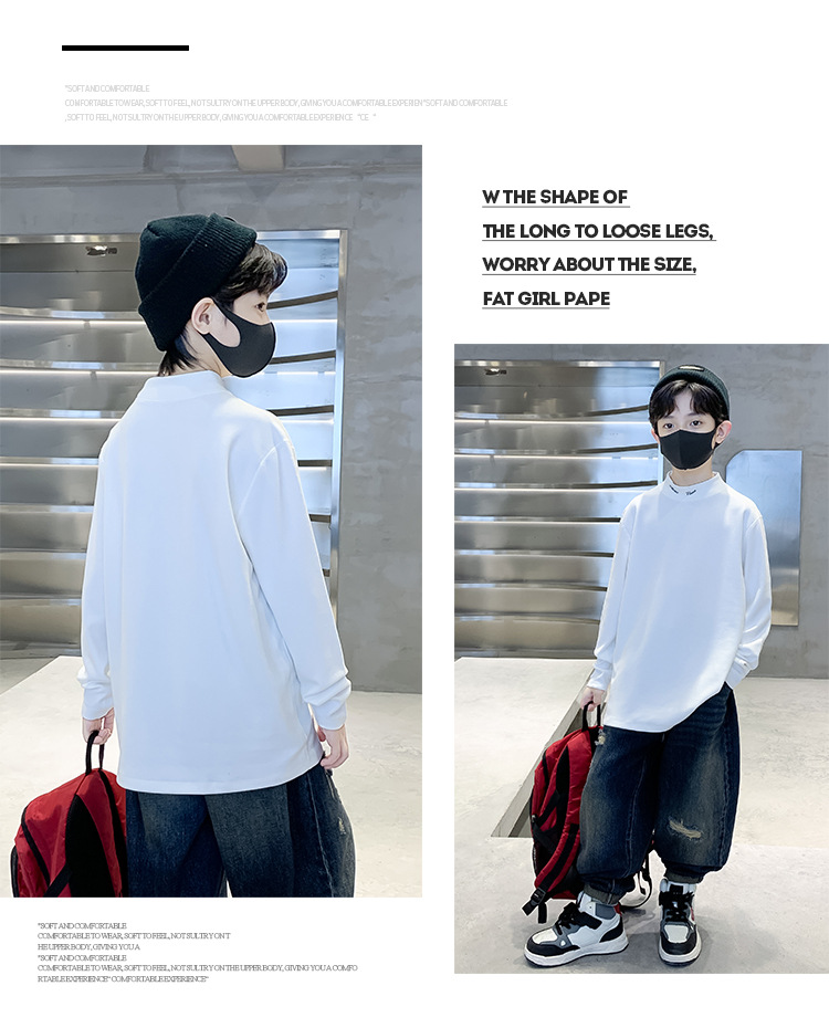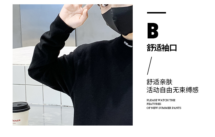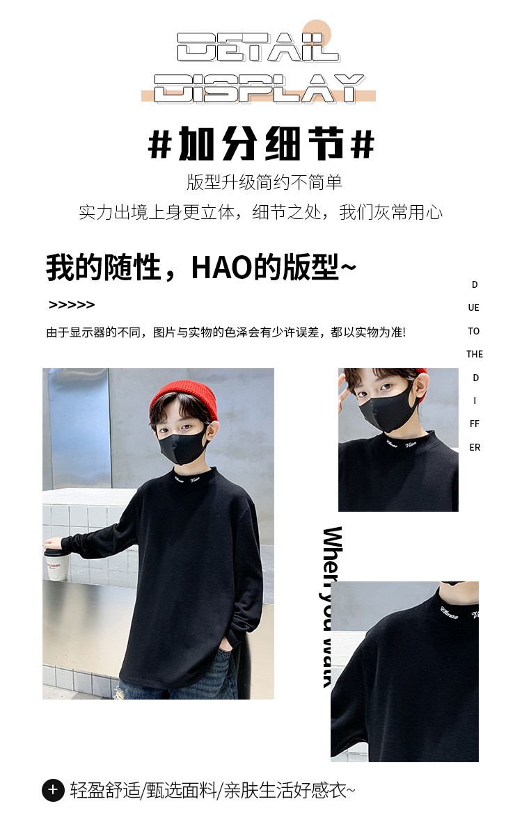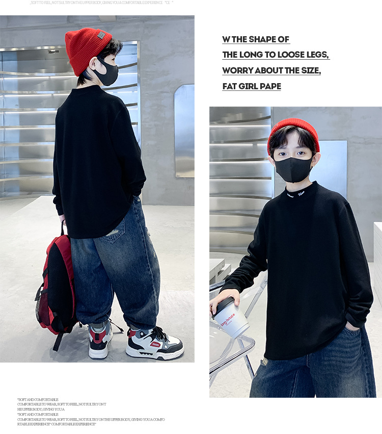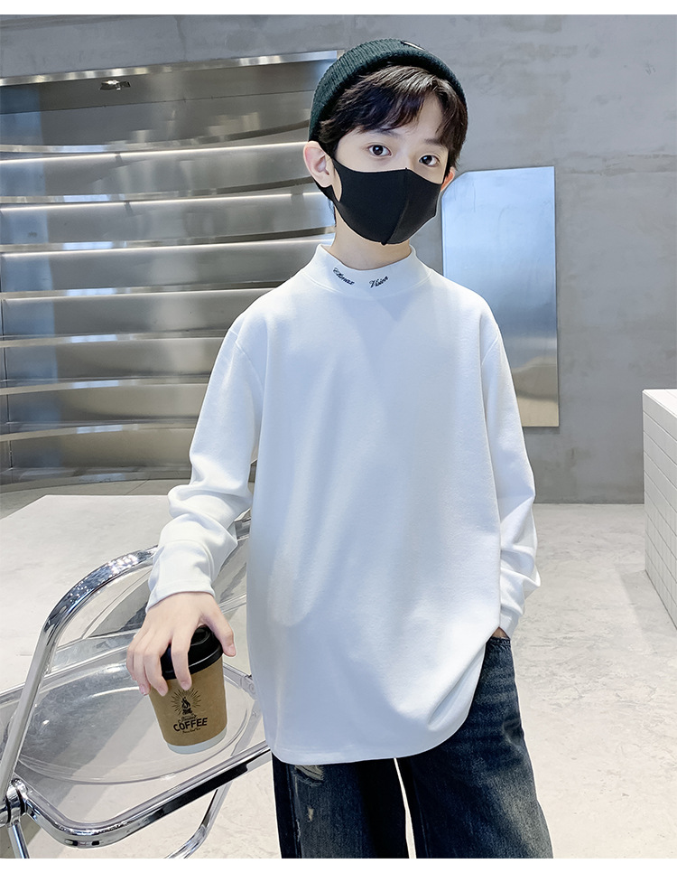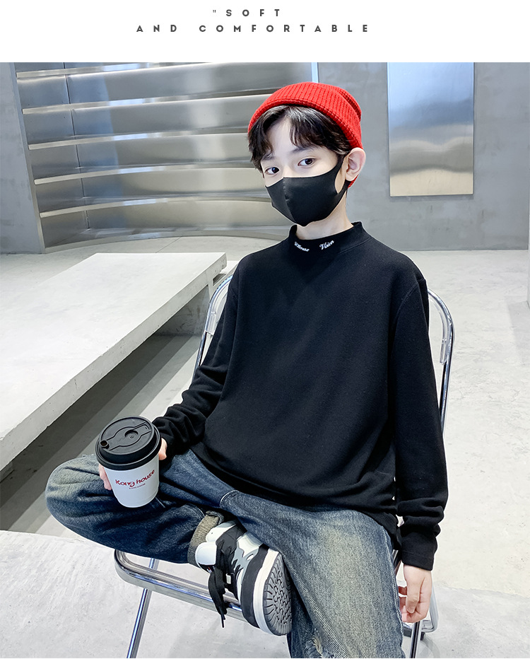 남아 베이스 긴팔 2023 새로운 가을 어린이 겨울 캐주얼 미드 하이 넥 피부 친화적 부드러운 패션 따뜻한 샌딩스토어 가기