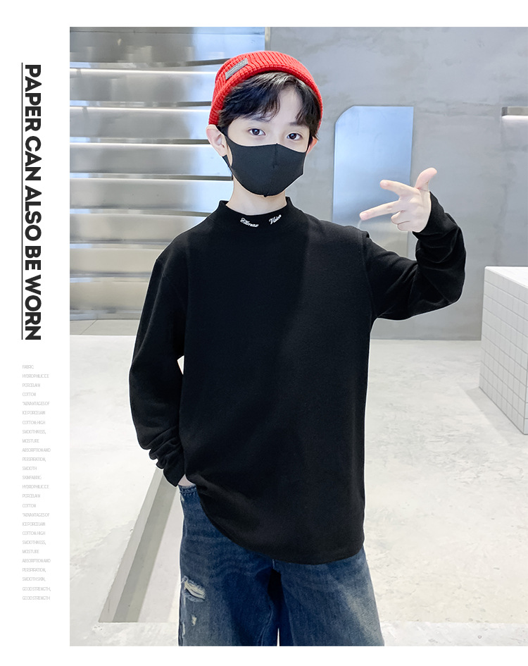 남아 베이스 긴팔 2023 새로운 가을 어린이 겨울 캐주얼 미드 하이 넥 피부 친화적 부드러운 패션 따뜻한 샌딩