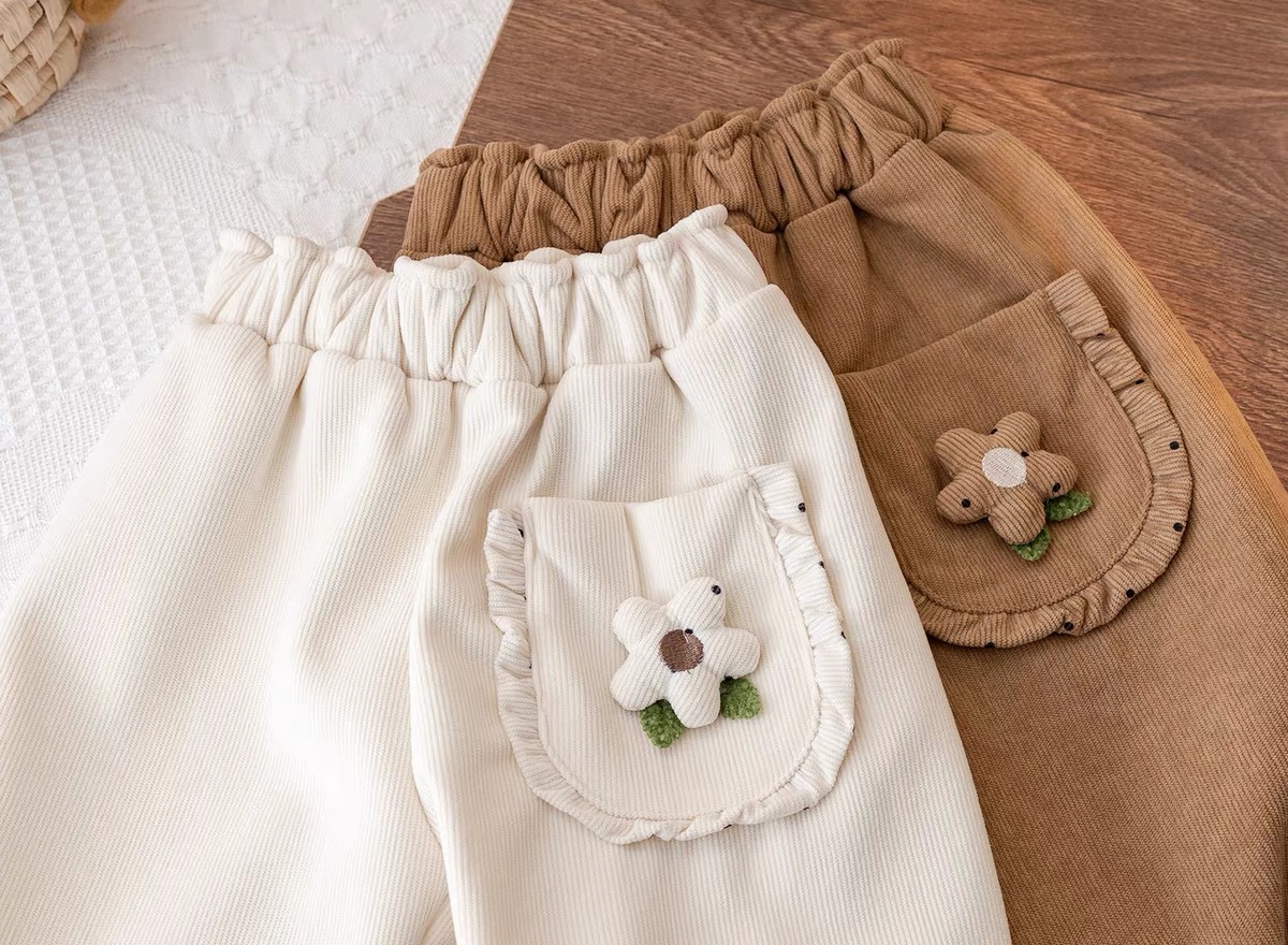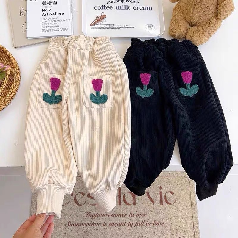 한국 스타일 가을과 겨울 바지 아기 소녀의 꽃 코듀로이 코듀로이 블루머 바지 서양 스타일 소녀의 기모 바지 어린이 스포츠 운동복 바지스토어 가기
