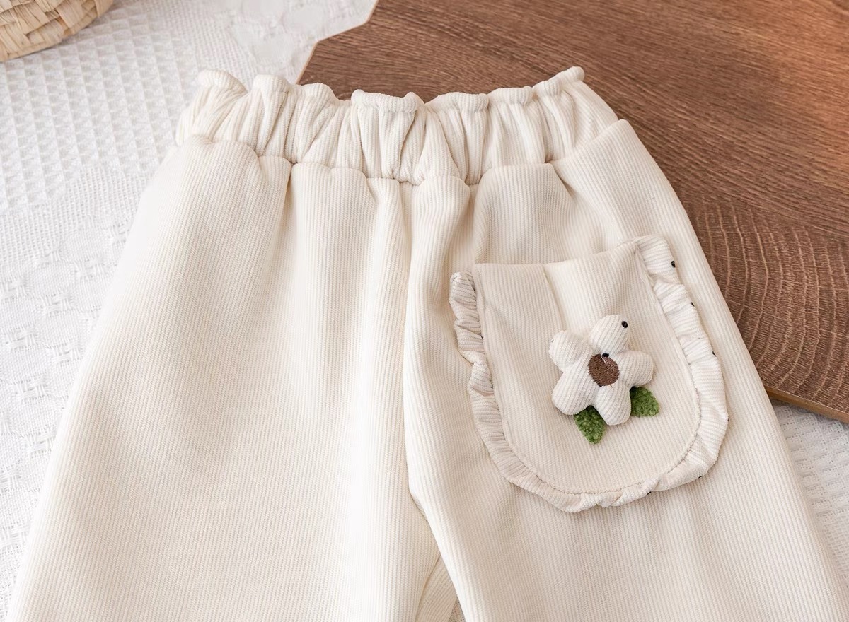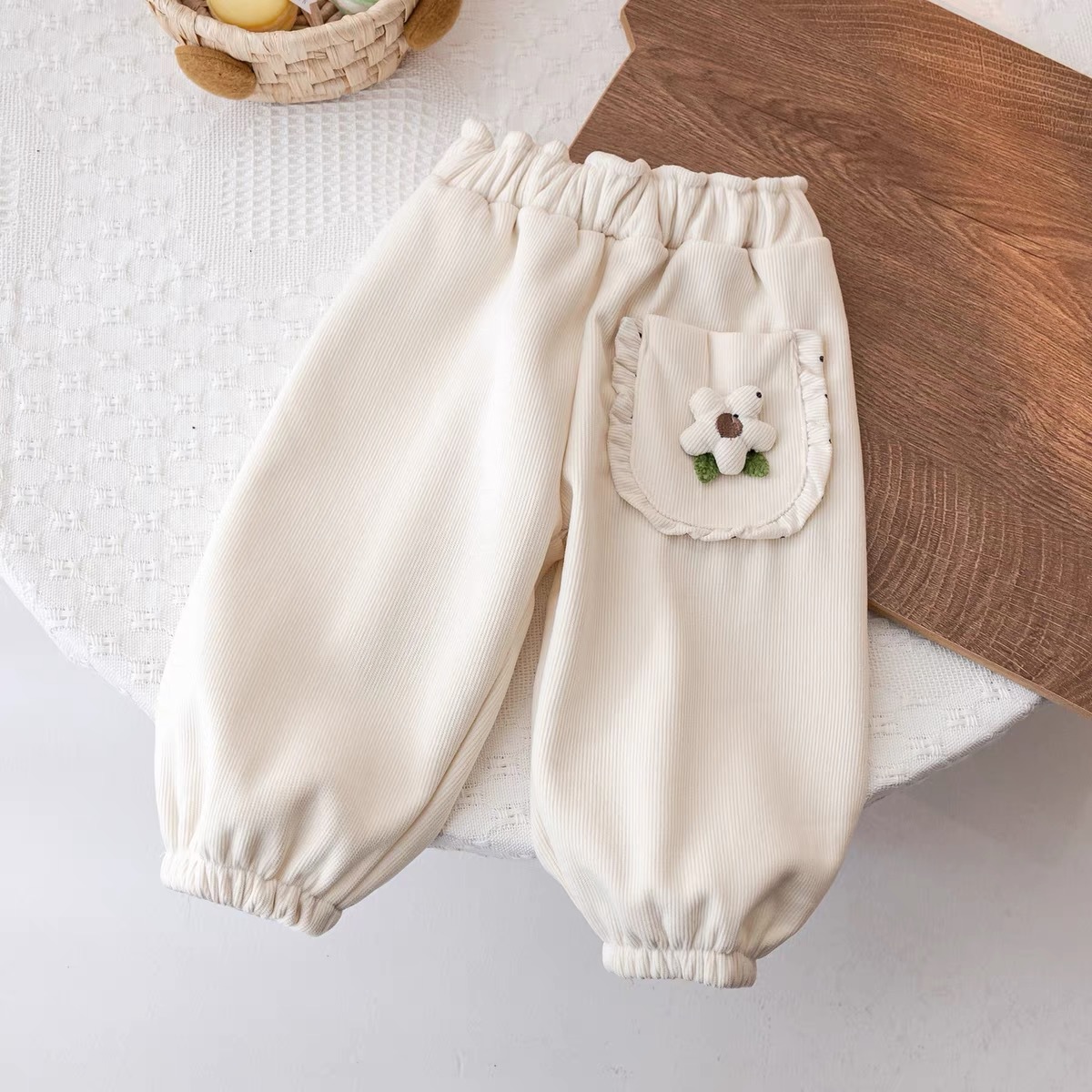 한국 스타일 가을과 겨울 바지 아기 소녀의 꽃 코듀로이 코듀로이 블루머 바지 서양 스타일 소녀의 기모 바지 어린이 스포츠 운동복 바지