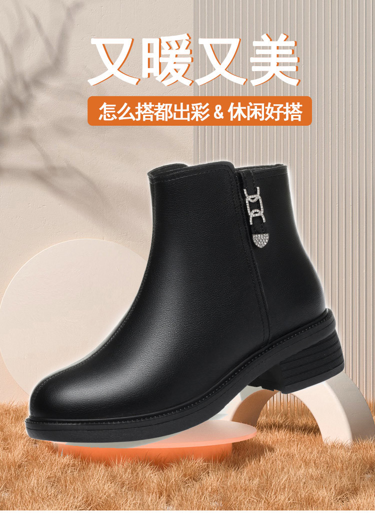 부드러운 밑창 앵클 부츠 여성 가을과 겨울 2023 새로운 패션 부츠 편안한 기모 가죽 신발 중년 및 노인 엄마 신발 면화 신발