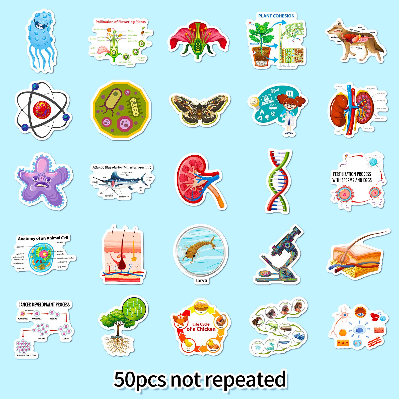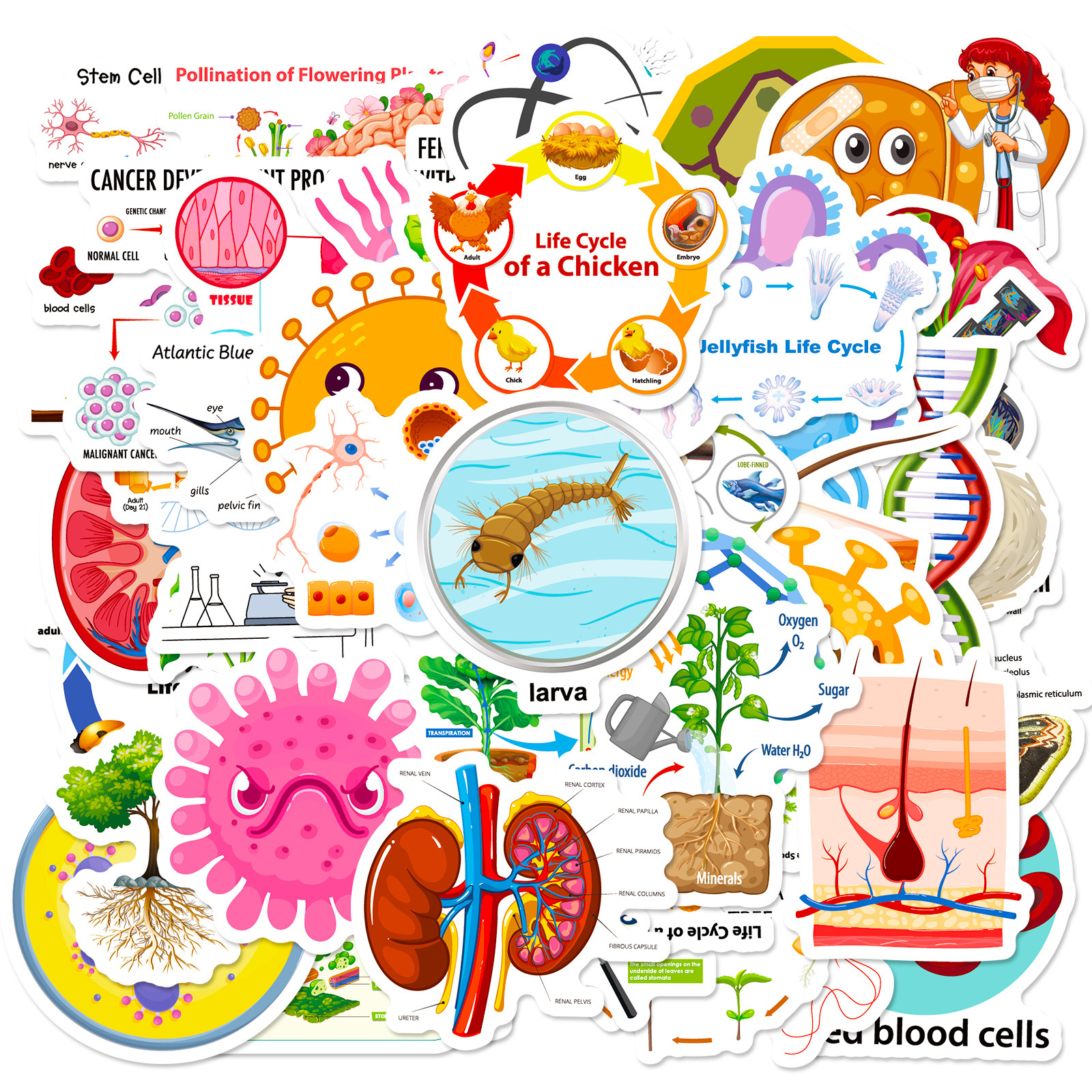 50 생물 실험 어린이 지식지도 퍼즐 과학 스티커 크로스 보더 만화 화학 인간 장기 낙서 스티커스토어 가기