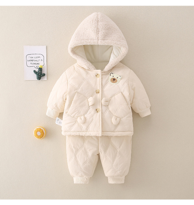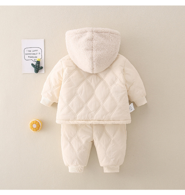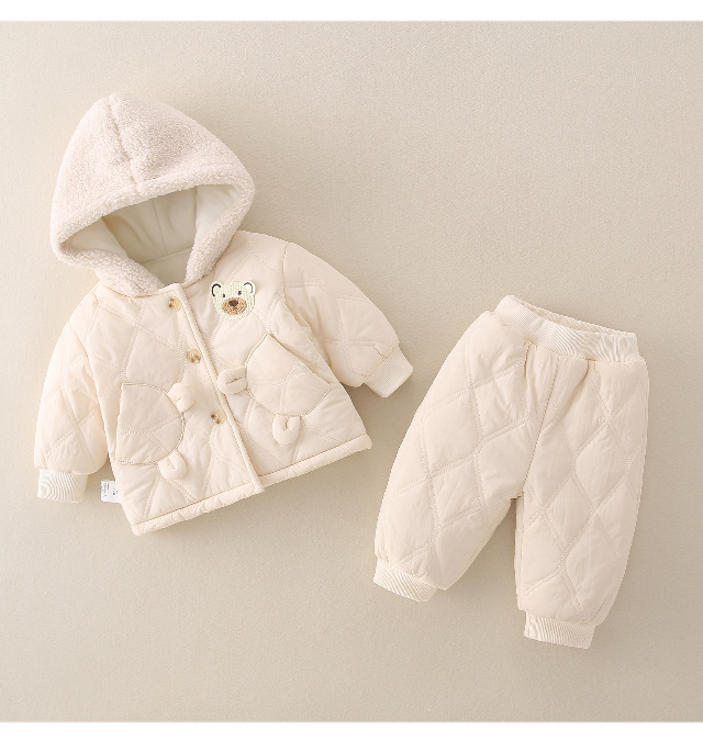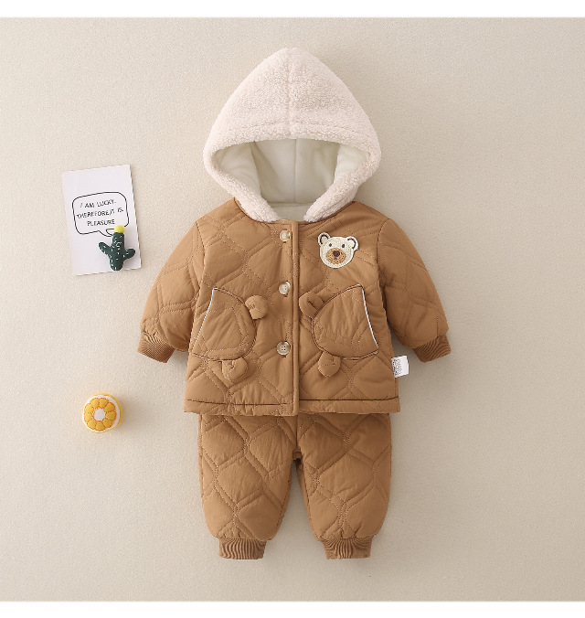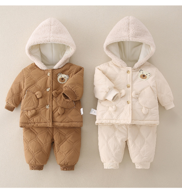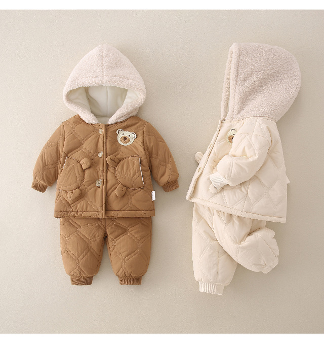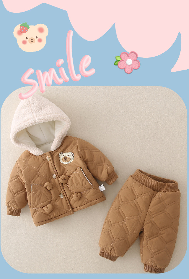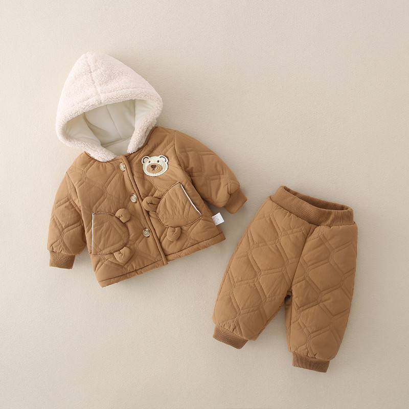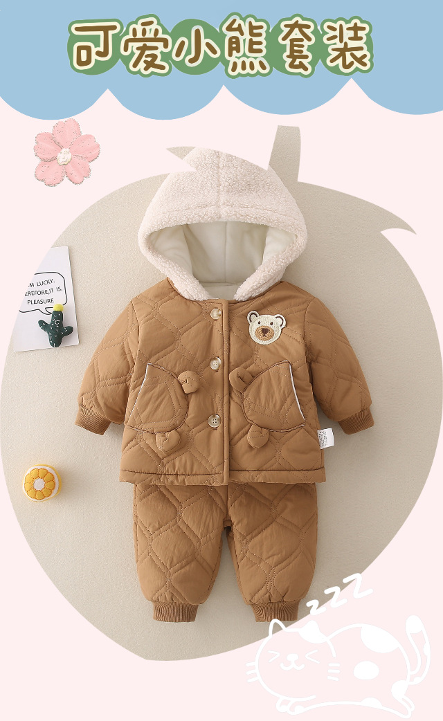 겨울 아기 세트 2023 새로운 세련된 유행 아기 옷 소년과 소녀 기모 퀼트 투피스 세트