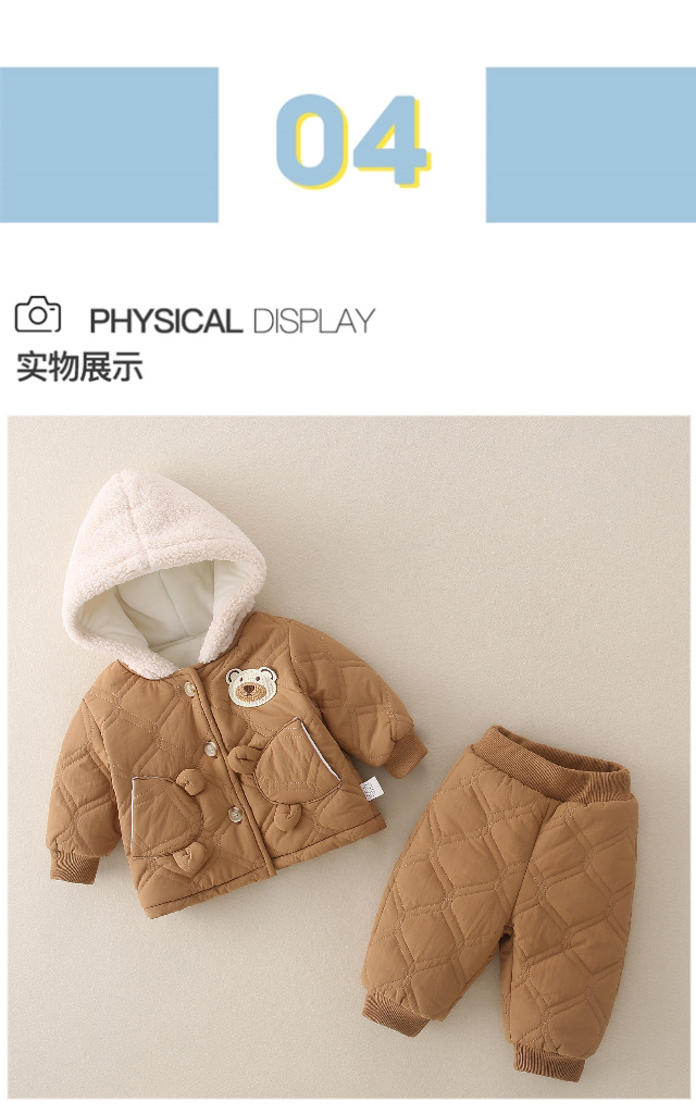 겨울 아기 세트 2023 새로운 세련된 유행 아기 옷 소년과 소녀 기모 퀼트 투피스 세트스토어 가기