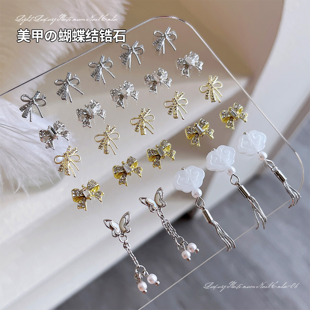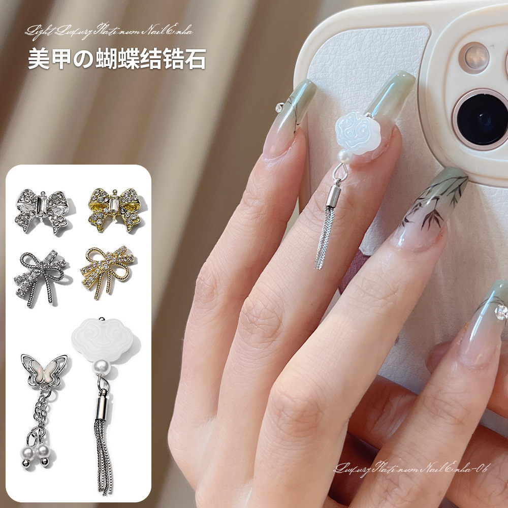 새로운 나비 지르콘 네일 쥬얼리 빛 럭셔리 합금 술 펜던트 금속 요정 나비 네일 액세서리 도매스토어 가기