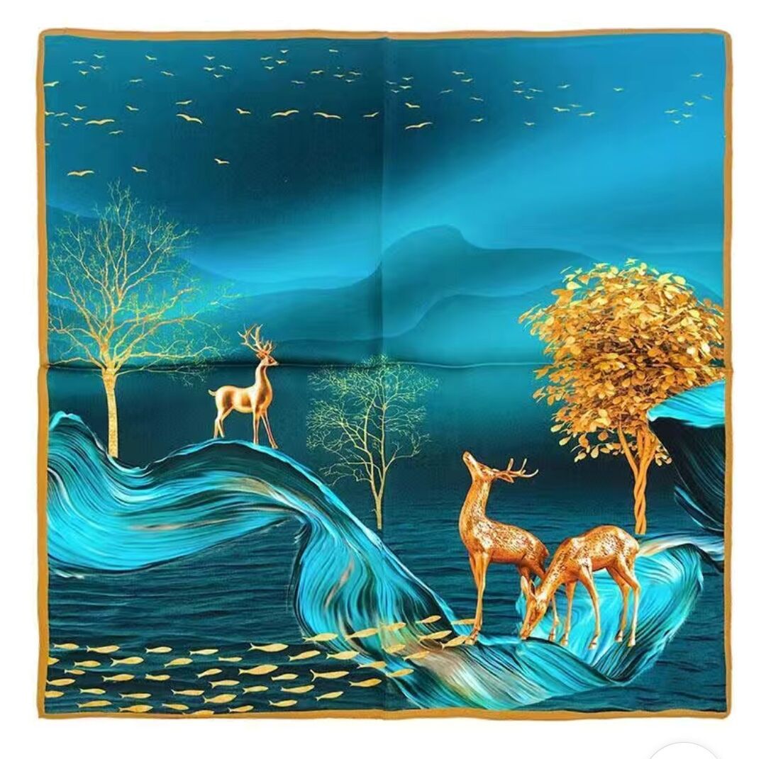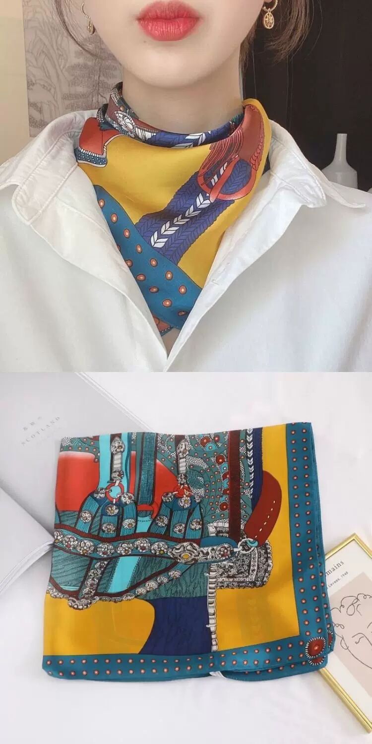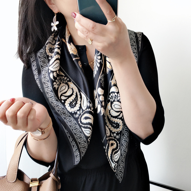 70*70 스퀘어 실크 모조 2022 봄과 가을 패션 기질 인쇄 실크 스카프 한국 숙녀 조커 스카프스토어 가기