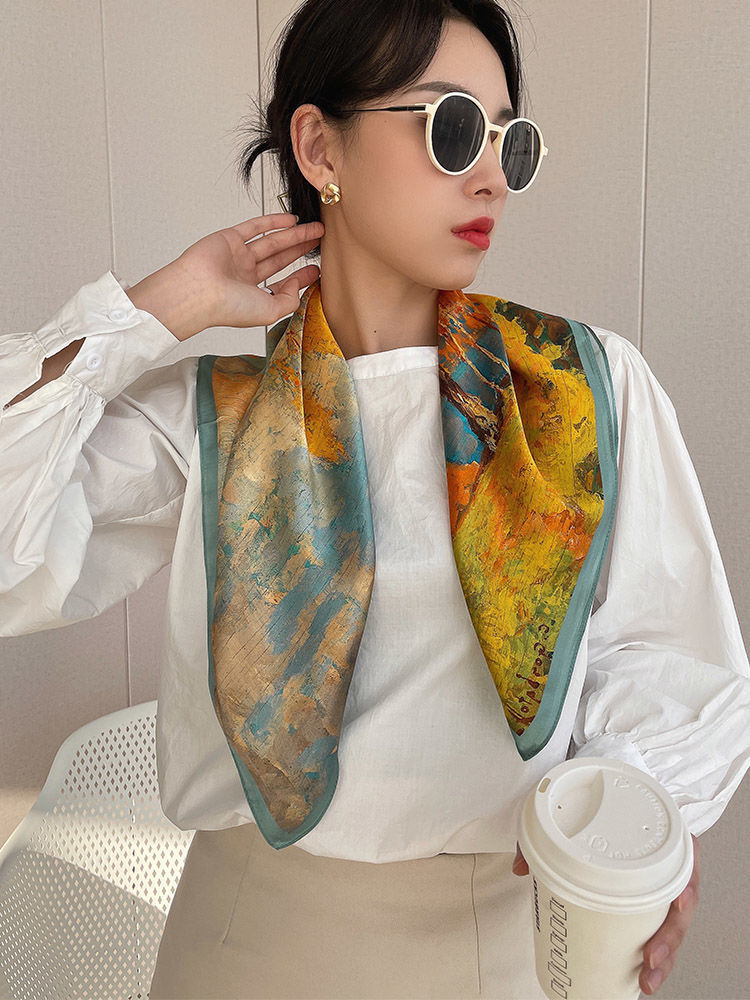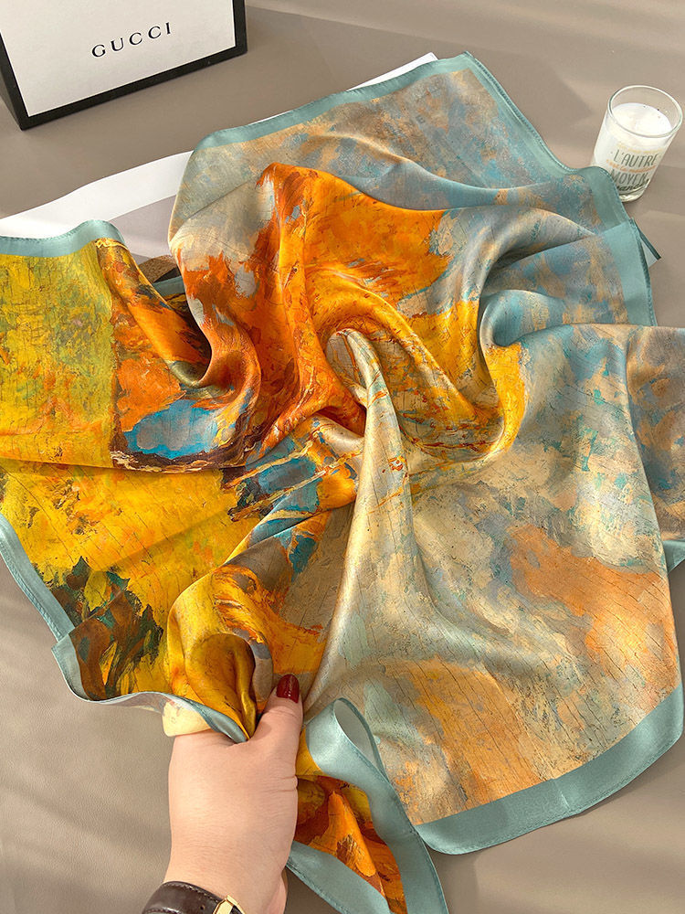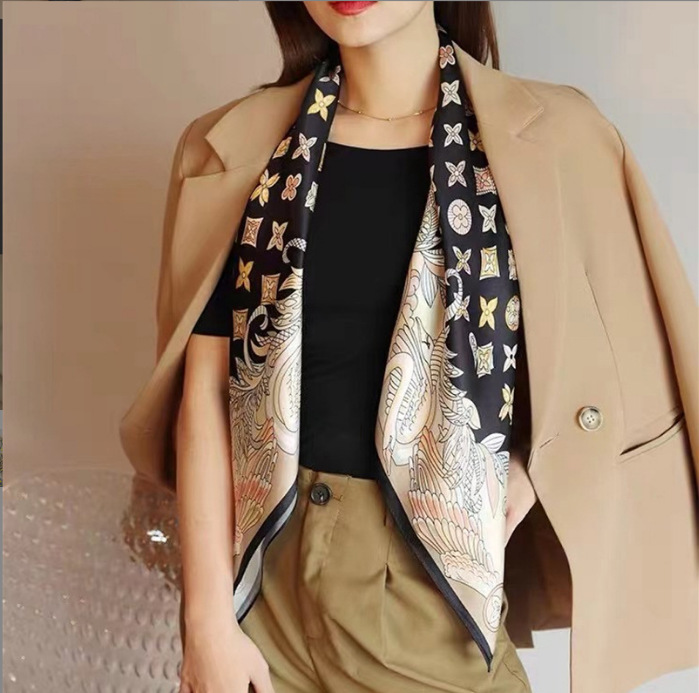 70*70 스퀘어 실크 모조 2022 봄과 가을 패션 기질 인쇄 실크 스카프 한국 숙녀 조커 스카프